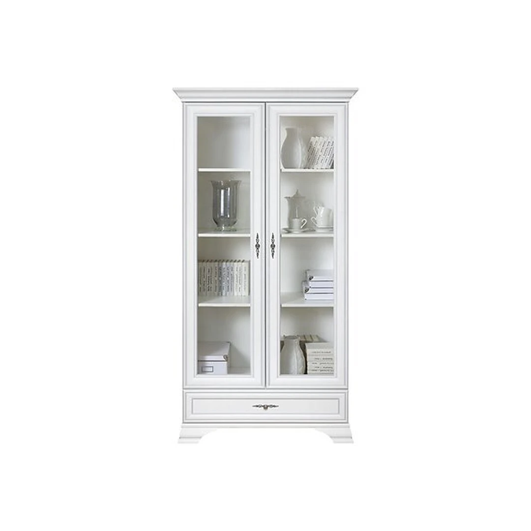 Klasikinio stiliaus vitrina KENTUKI su dvejomis durimis, stalčiumi ir stiklu.