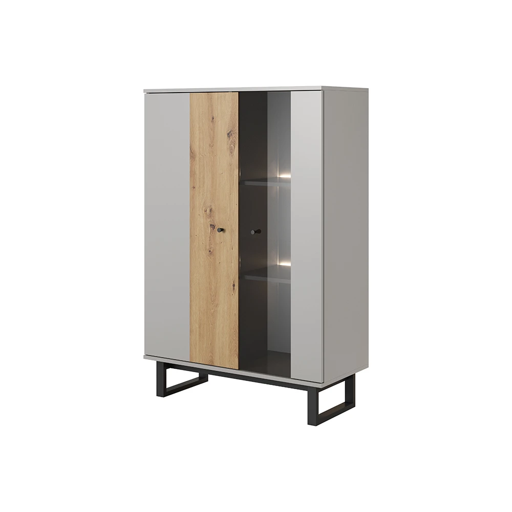 Originalaus stiliaus, funkcionali vitrina, kurioje skoningai parinktas skirtingų spalvų derinys. Iškirtinumo šiam baldui suteikia vientisas metalinis baldo pagrindas. Baldo briaunos yra padengtos ABS plastiku . Yra galimybė susimontuoti LED apšvietimą.
