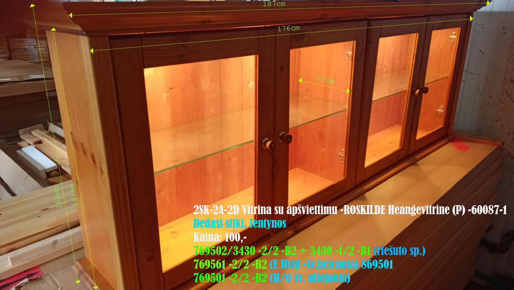 Vitrina ROSKILDE - 60087-1 - su apšvietimu -2SK-2A-2D - MEDŽIO MASYVO BALDAS