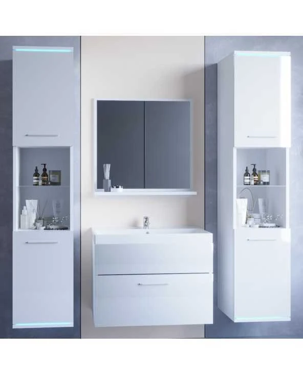 | Spintelės turi universalias dureles.Po praustuvu esančios spintelės durelės atsidaro žemyn.Baldai tvirtai supakuoti į pakuotes, skirtas savarankiškam surinkimui.DO1 aukštose spintose yra galimybė apšviesti 3 vietose. | ||
