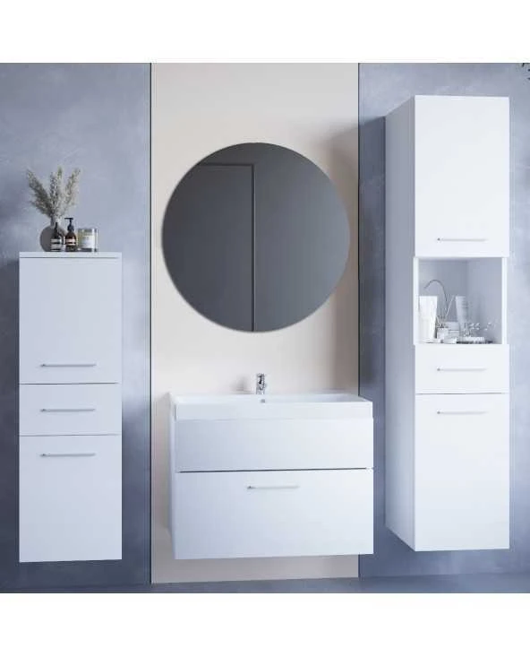| LP1 - aukštas korpusas (30/140/32)LP2 - Praustuvo spintelė (60/46/35)LP3 - žemas korpusas (30/92/32)MIR2 - Apvalus vonios kambario veidrodis (60/60) | ||