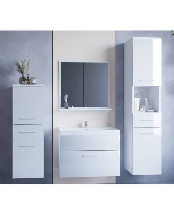 | Baldus galima įsigyti komplektais ir atskiromis dalimis.Spintelės turi universalias dureles ir stalčius ant metalinių kreipiančiųjų.Po praustuvu esanti spintelė atsidaro žemyn.Baldai tvirtai supakuoti į pakuotes, skirtas savarankiškam surinkimui. | ||