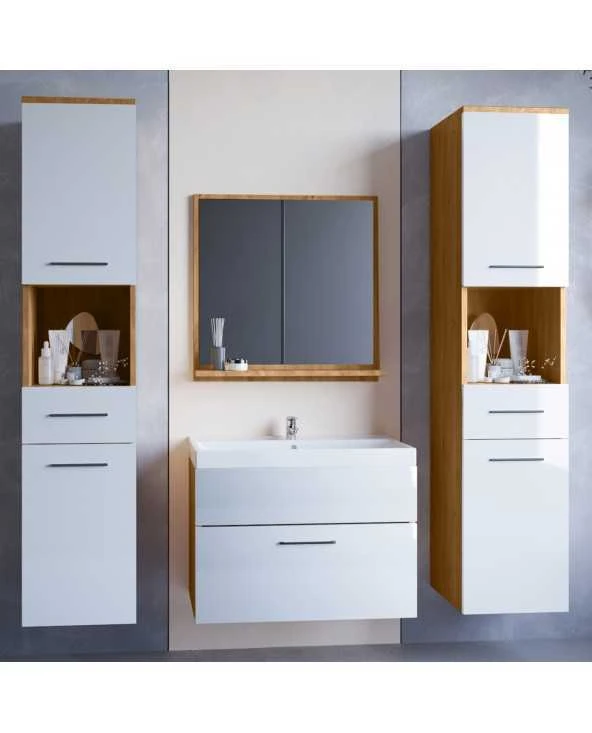| Baldus galima įsigyti komplektais ir atskiromis dalimis.Spintelės turi universalias dureles ir stalčius ant metalinių kreipiančiųjų.Po praustuvu esanti spintelė atsidaro žemyn.Baldai tvirtai supakuoti į pakuotes, skirtas savarankiškam surinkimui. | ||