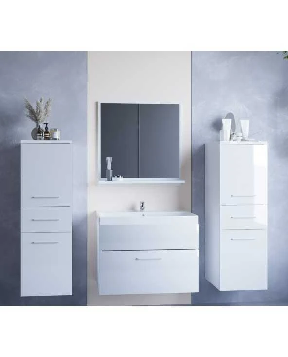 | Baldus galima įsigyti komplektais ir atskiromis dalimis.Spintelės turi universalias dureles ir stalčius ant metalinių kreipiančiųjų.Po praustuvu esanti spintelė atsidaro žemyn.Baldai tvirtai supakuoti į pakuotes, skirtas savarankiškam surinkimui. | ||