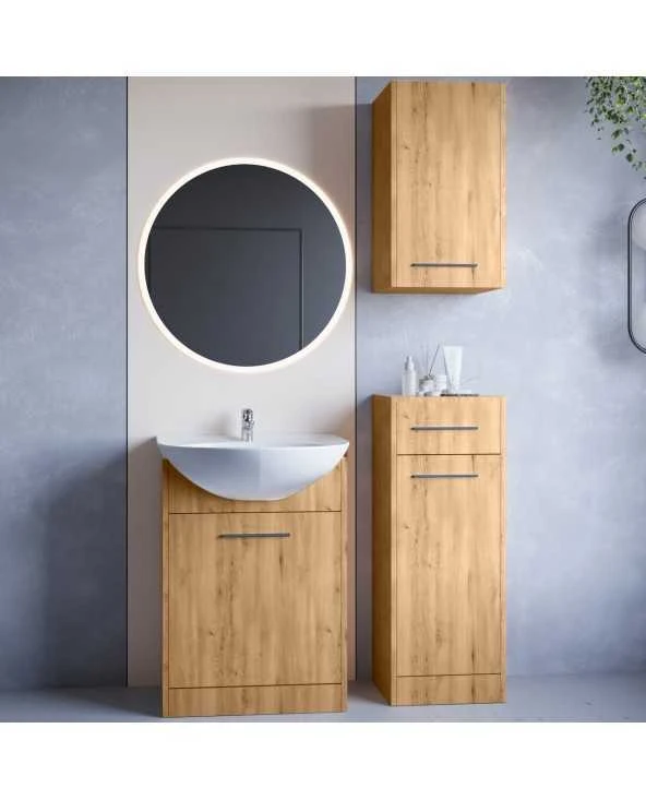 | Baldus galima įsigyti komplektais ir atskiromis dalimis.Spintelės turi universalias dureles ir stalčius ant metalinių kreipiančiųjų.Praustuvo spintelės durelės atsidaro žemyn.Baldai tvirtai supakuoti į pakuotes, skirtas savarankiškam surinkimui.Veidrodis turi jutiklinį jungiklį. | ||