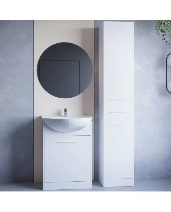 | SL1 - Aukšta spinta (34/180/30)SL2 - Praustuvo spintelė (52/74/30)MIR2 - Apvalus vonios kambario veidrodis (60/60) | ||