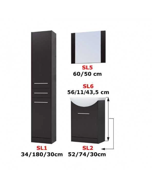 | SL2 - Praustuvo spintelė (52/74/30)SL3 - Žemas korpusas (34/90/30)SL4 - Sieninė spintelė (34/60/30)SL5 - Veidrodis (60/50/) | ||