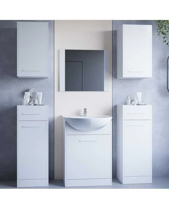 | Baldus galima įsigyti komplektais ir atskiromis dalimis.Spintelės turi universalias dureles ir stalčius ant metalinių kreipiančiųjų.Praustuvo spintelės durelės atsidaro žemyn.Baldai tvirtai supakuoti į pakuotes, skirtas savarankiškam surinkimui. | ||