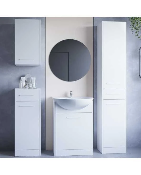 | SL1 - Aukšta spinta (34/180/30)SL2 - Praustuvo spintelė (52/74/30)SL3 - Žemas korpusas (34/90/30)SL4 - Sieninė spintelė (34/60/30)MIR2 - Apvalus vonios kambario veidrodis (60/60) | ||