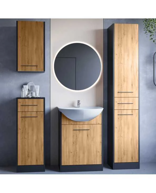| SL1 - Aukšta spinta (34/180/30)SL2 - Praustuvo spintelė (52/74/30)SL3 - Žemas korpusas (34/90/30)SL4 - Sieninė spintelė (34/60/30)MIR1 - Veidrodis (60/60) | ||