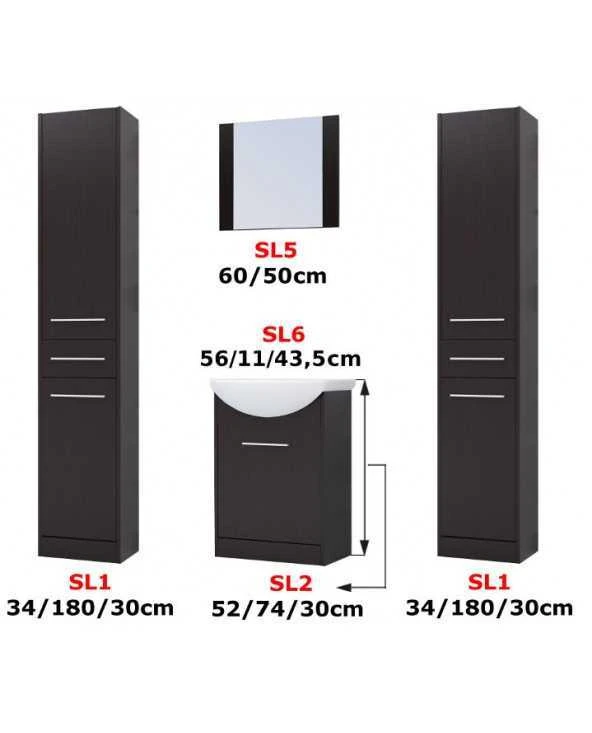 | SL1 - Aukšta spintelė (34/180/30) 2vnt.SL2 - Praustuvo spintelė (52/74/30)SL5 - Veidrodis (60/50/) | ||