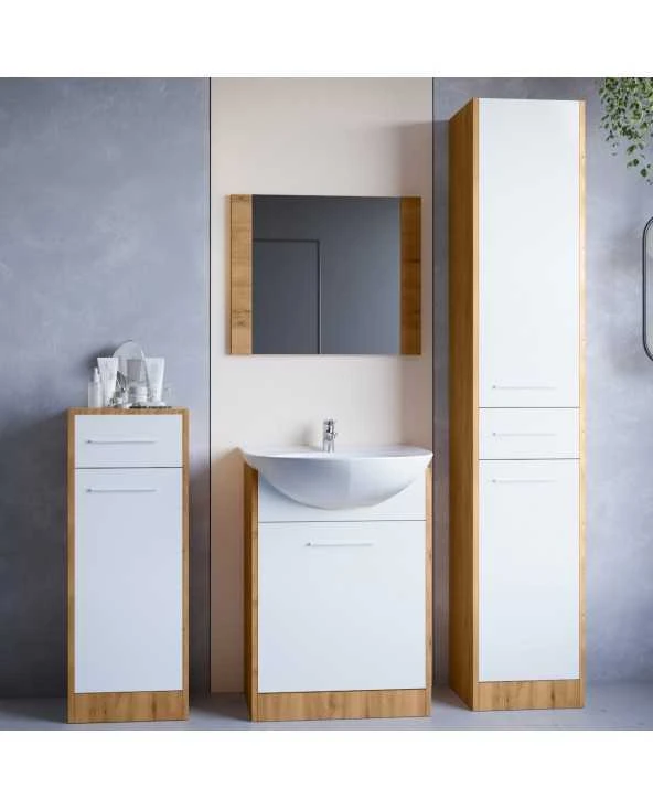 | SL1 - Aukšta spinta (34/180/30)SL2 - Praustuvo spintelė (52/74/30)SL3 - Žemas korpusas (34/90/30)SL5 - Veidrodis (60/50/) | ||