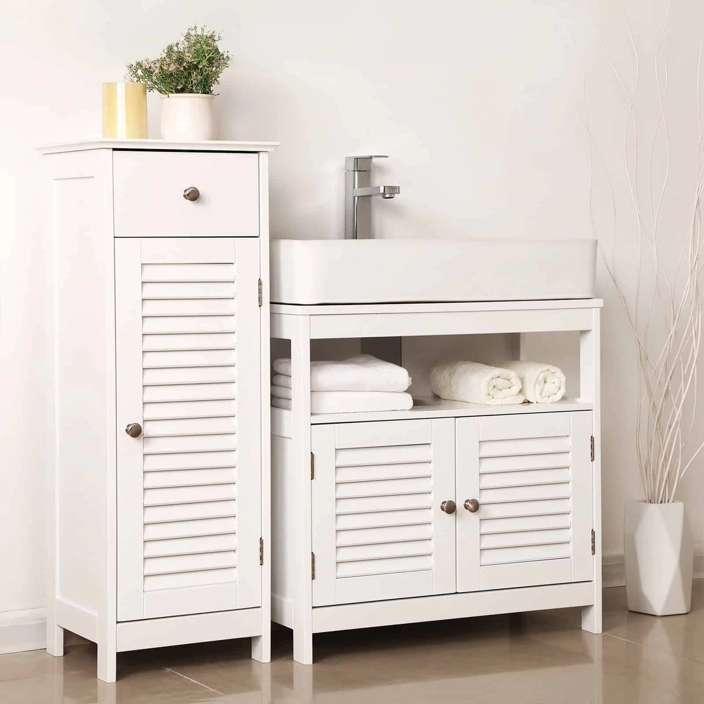 Aprašymas buvo automatiškai išverstas, gali pasitaikyti klaidų.Ar vis dar erzinate, kad vonios kambaryje niekada neužtenka vietos būtiniausioms maudymosi reikmenims? Su VASAGLE praustuvu galite optimaliai išnaudoti erdvę po praustuvu ir sukurti papildomos vietos daiktams laikyti. Vonioje lengvai susidėsite visus kasdienius daiktus, spintelė – tikras vietos taupymas vonioje.Aukštos kokybės MDF plokštės užtikrina puikų stabilumą ir ilgą tarnavimo laiką net drėgnoje patalpoje. Paviršius, padengtas baltais dažais, yra lengvai valomas, todėl bus lengviau atlikti namų ruošos darbus. Šiuolaikiška ir elegantiška išvaizda ši spinta atkreipia visų dėmesį VASAGLE yra įsipareigojusi tiekti aukštos kokybės baldus, kad sukurtų patogią ir jaukią atmosferą jūsų namuose. Jūsų namai taps oaze!Išsami informacija apie gaminį: - Matmenys: 60 x 60 x 30 cm (P x A x A) - Sifono išpjovos matmenys: 20 x 8 cm (Prieš pirkdami išmatuokite sifono dydį ir nustatykite, ar ši apatinė spintelė tinka . - Pakuotės matmenys: 71 x 15 x 38 cm - Medžiaga: MDF plokštė - Spalva: balta - Grynasis svoris: 9,5 kg - Bruto svoris: 10,6 kg Pristatymo komplektas: - 1 x kosmetinė - 1 x priedų krepšys - 1 x rankinis (DE, EN , IT, FR, ES)