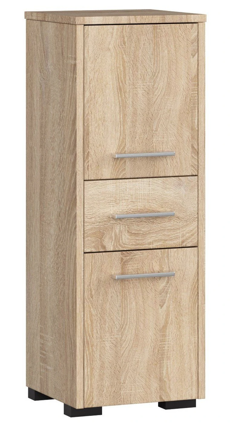 Aprašymas buvo automatiškai išverstas, gali pasitaikyti klaidų. Didelė oro drėgmė vonioje reiškia, kad joje pastatyti baldai turi būti itin patvarūs. Mūsų pasiūlyme pateikiamas spintelė-stulpelis FIN 2D 1SZ vonios stelažas pagamintas iš laminuotos plokštės, pagamintos Kronospan, 16 mm storio. Kraštai apdailinti ABS apvadu. Visa tai daro spintelę atsparią įbrėžimams, mechaniniams pažeidimams ir drėgmei. Spinta yra labai universalus baldas. Į komplektą įeina ir reguliuojamos pakabos, ir kojelės spintelei pastatyti ant žemės. Apatinė lentynos dalis yra vienoda, uždara erdvė, kurioje galima sėkmingai laikyti rankšluosčius. Tačiau viršutinių durų viduje yra viena lentyna, kurioje galite atskirti kosmetiką. Centrinę stulpelio dalį užima ištraukiamas stalčius. Šis baldas pagamintas Sonomos ąžuolo spalvos, o jo durys dekoruotos sidabrinėmis rankenomis. Pagrindinės savybės: Vonios lentyna su stulpeliu FIN 2D 1SZ Pagaminta ąžuolo spalvos sonoma Spintelė, skirta montuoti savarankiškai Pristatymo instrukcijos 24 mėnesių garantija