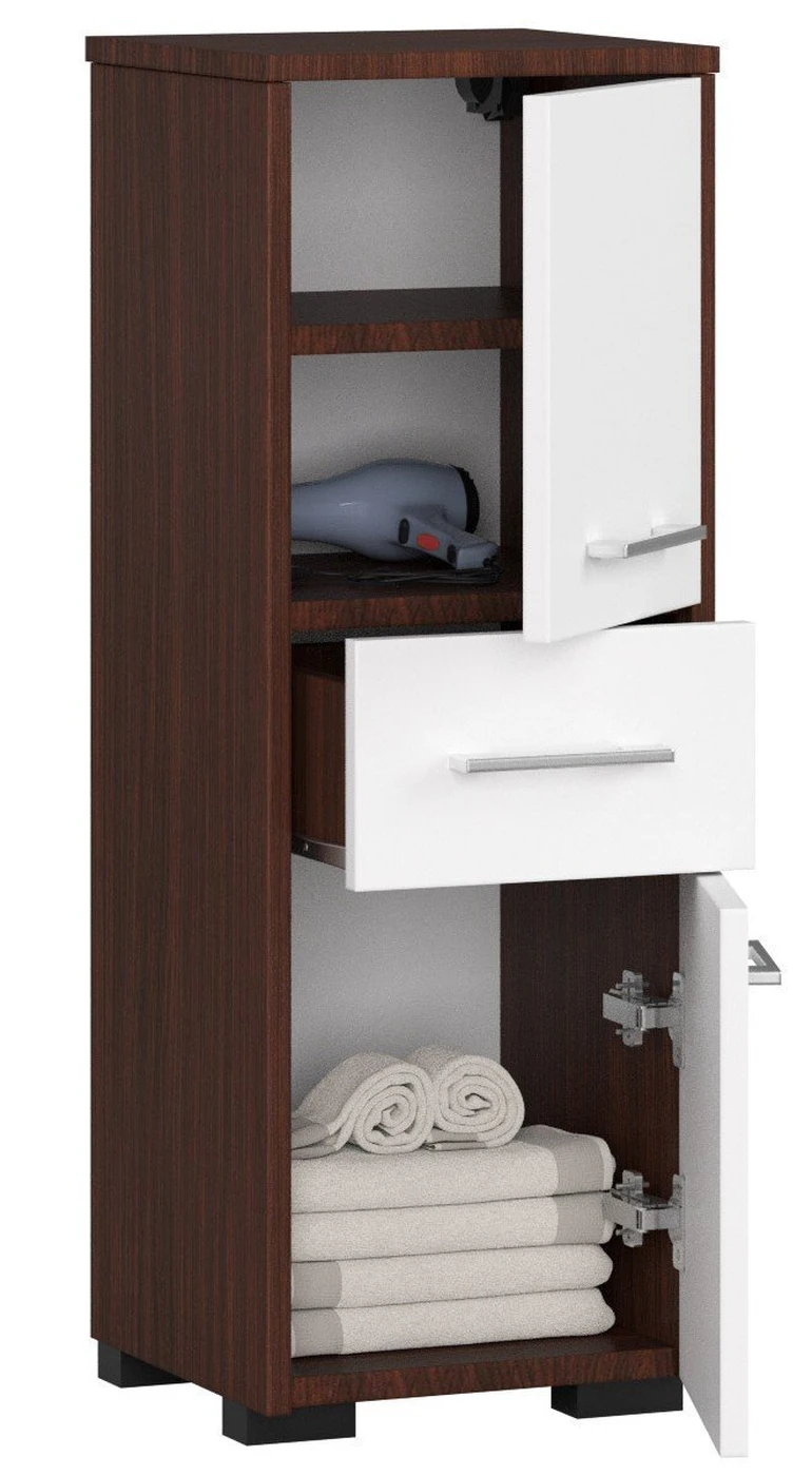 Aprašymas buvo automatiškai išverstas, gali pasitaikyti klaidų. Negalima paneigti, kad dažnai vonios kambaryje neturime neribotos erdvės. Tačiau gaminys ir priedai, kuriuos turime įdėti į jį, yra didžiuliai. Įsitikinkite, kad savo vonios kambarį sutvarkote geriausiu įmanomu būdu ir kartu sutvarkykite jį estetiškai. Tam jums padės spintelė - FIN 2D, tamsiai ruda vonios stulpelis, pagamintas iš aukščiausios kokybės laminuotos plokštės. Šis gaminys puikiai tiks tiek mažesniems vonios kambariams, tiek turintiems didžiulį plotą. Abiem atvejais spintelė bus puiki kompozicija. Šis ergonomiškas vonios stulpas, nepaisant jo nepastebimų matmenų, gali puikiai sutvarkyti jūsų vonios erdvę. Spintelė turi kojeles, kurios neužtikrina kontakto su žeme, todėl po ja nesikaups vanduo. Be to, pakuotėje taip pat yra reguliuojamos pakabos jai pakabinti. Šis universalus gaminys susideda net iš trijų lentynų, kurios pasižymi didžiule talpa, ir vieno ištraukiamo stalčiaus. Durų rankenos yra pilkos spalvos, kurios tikrai puikiai tiks prie bet kokio vonios kambario dekoro. Taip pat verta pridurti, kad siekiant užtikrinti tinkamą spintelės apsaugą, jos kraštai buvo apklijuoti ABS apvadu. Be to, spintelė yra 13 spalvų variantų. Be to: garantija yra 24 mėnesiai, pridedamos instrukcijos, spintelė tinka montuoti savarankiškai.