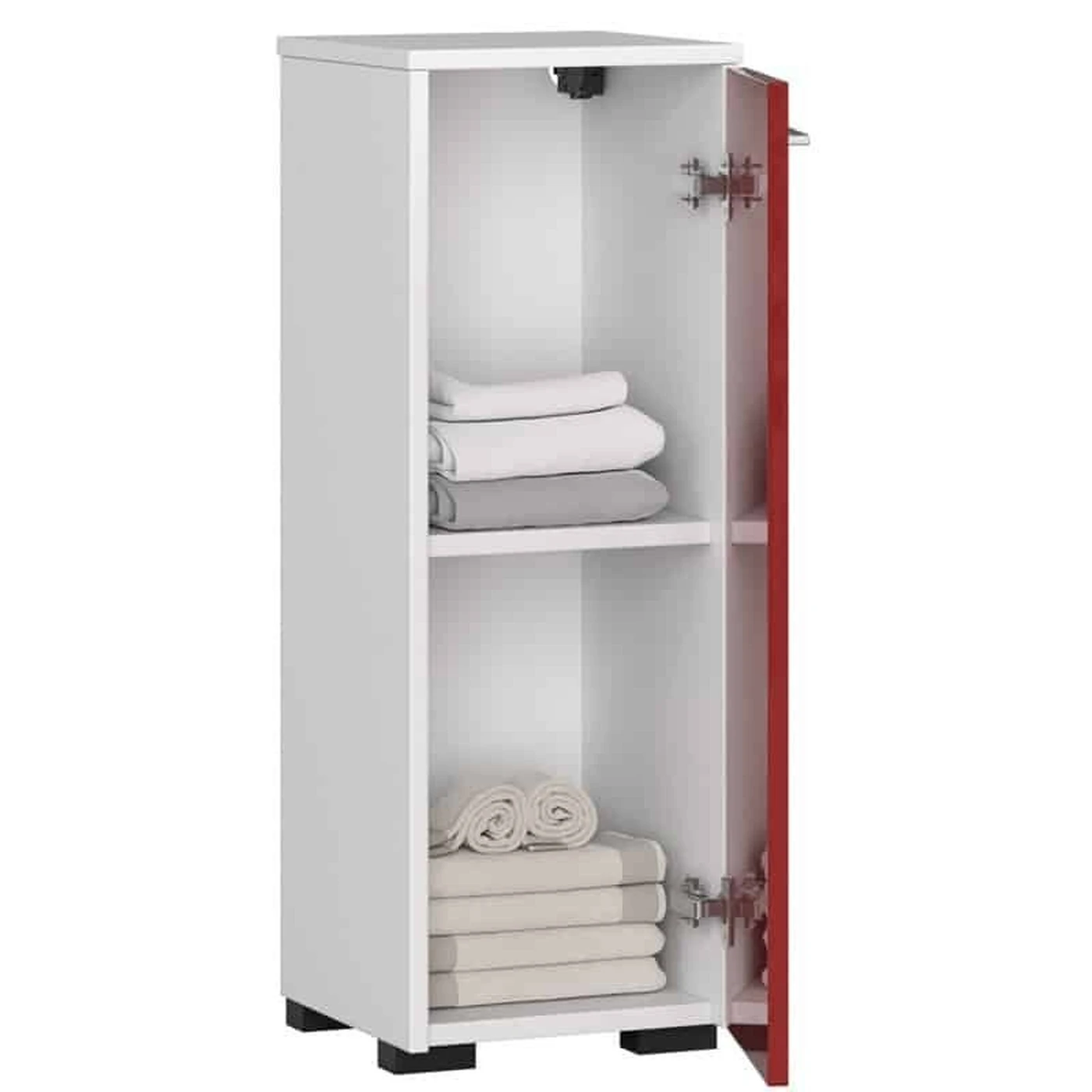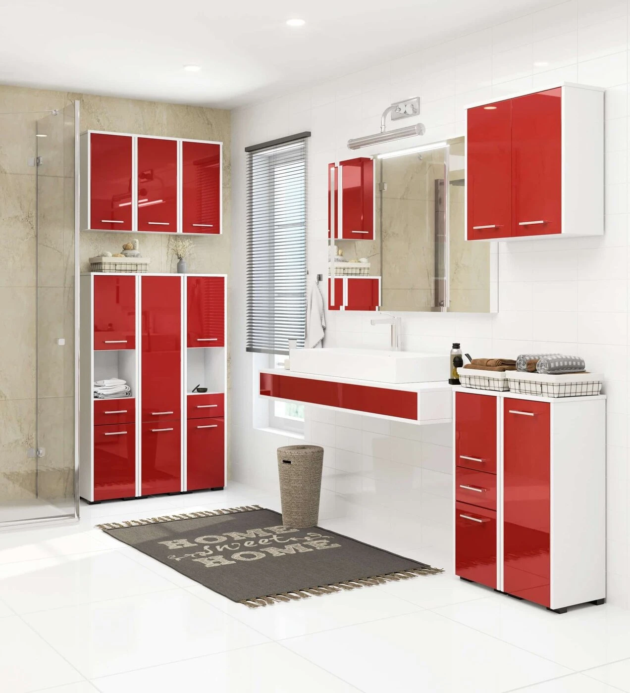 Aprašymas buvo automatiškai išverstas, gali pasitaikyti klaidų. Pastatoma vonios spintelė Fin S 30 cm, susidedanti iš dviejų kontrastingų spalvų – klasikinės gražios baltos ir ryškiai raudonos blizgančios – yra įdomus pasiūlymas, sukurtas šiuolaikiniams vonios kambariams. Stulpas su dviem spintelėmis, pastatytomis už uždarų durų, neabejotinai padės funkcionaliai sutvarkyti net mažą kambarį. Patrauklus ir solidžiai pagamintas baldas pasižymi dideliu patvarumu ir nesunkiai galėsite pasirinkti kitus įrangos elementus iš tos pačios kolekcijos. - Baldai pagaminti iš laminuotos plokštės pasižymi dideliu atsparumu dilimui; - Durų viduje yra erdvios lentynos; - Spintoje naudojamos universalios durelės - galima montuoti tiek dešinėje, tiek kairėje pusėje; - Kraštai padengti melaminu; - Sidabrinės durelių rankenos daro gaminį universalų ir tinka daugeliui skirtingų išdėstymų; - Spintelė skirta savarankiškai -surinkimas; - Instrukcijos pridedamos; - Gaminio garantija yra dvidešimt keturi mėnesiai.