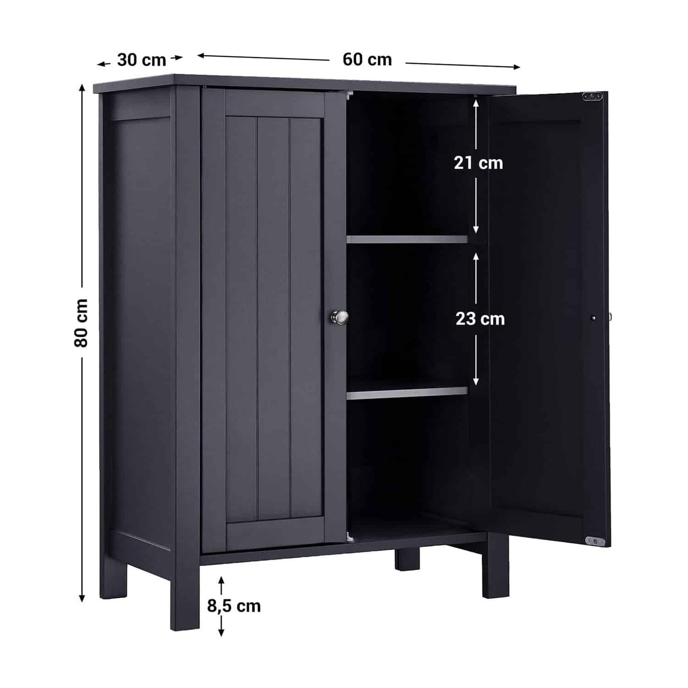 Aprašymas buvo automatiškai išverstas, gali pasitaikyti klaidų.Kaip įnešti ramybę į savo kambarį? Su šia spintele! Pilka spalva jūsų svetainei suteikia lengvumo ir švarumo. Ši skandinaviško stiliaus spintelė dvelkia lengvumu ir subtilumu, sukuria 100% gaivinančią atmosferą. Kaip išlaikyti vonios kambarį švarų? Net su šia spintele! Pavargote žaisti slėpynių su savo šukomis? Ar vis užkliūva už dušo želė buteliukų ant grindų? Šioje vonios spintelėje su 2 lentynomis (reguliuojamos iki 3 aukščių) tvarkingai laikykite visus būtiniausius daiktus ir visada gerai paruoškite savo vonios kambarį. Puikus!Išsami informacija apie gaminį: - Spalva: Pilka - Medžiaga: MDF (vidutinio tankio medienos plaušų plokštė) - Dydis: 60 x 30 x 80 cm (P x P x A) - Svoris: 13 kg Pristatymo apimtis: - 1 x vonios spintelė - 1 x anti - Savivartis - 1 x priedų paketas - 1 x Instrukcijos (DE, EN, FR, ES, IT) VASAGLE Pastabos: - Saugumo sumetimais vaikams draudžiama lipti ant gaminio ar žaisti su juo. - Pritvirtinkite šį gaminį prie siena su apsauga nuo apvirtimo, kad būtų užtikrintas saugus naudojimas.