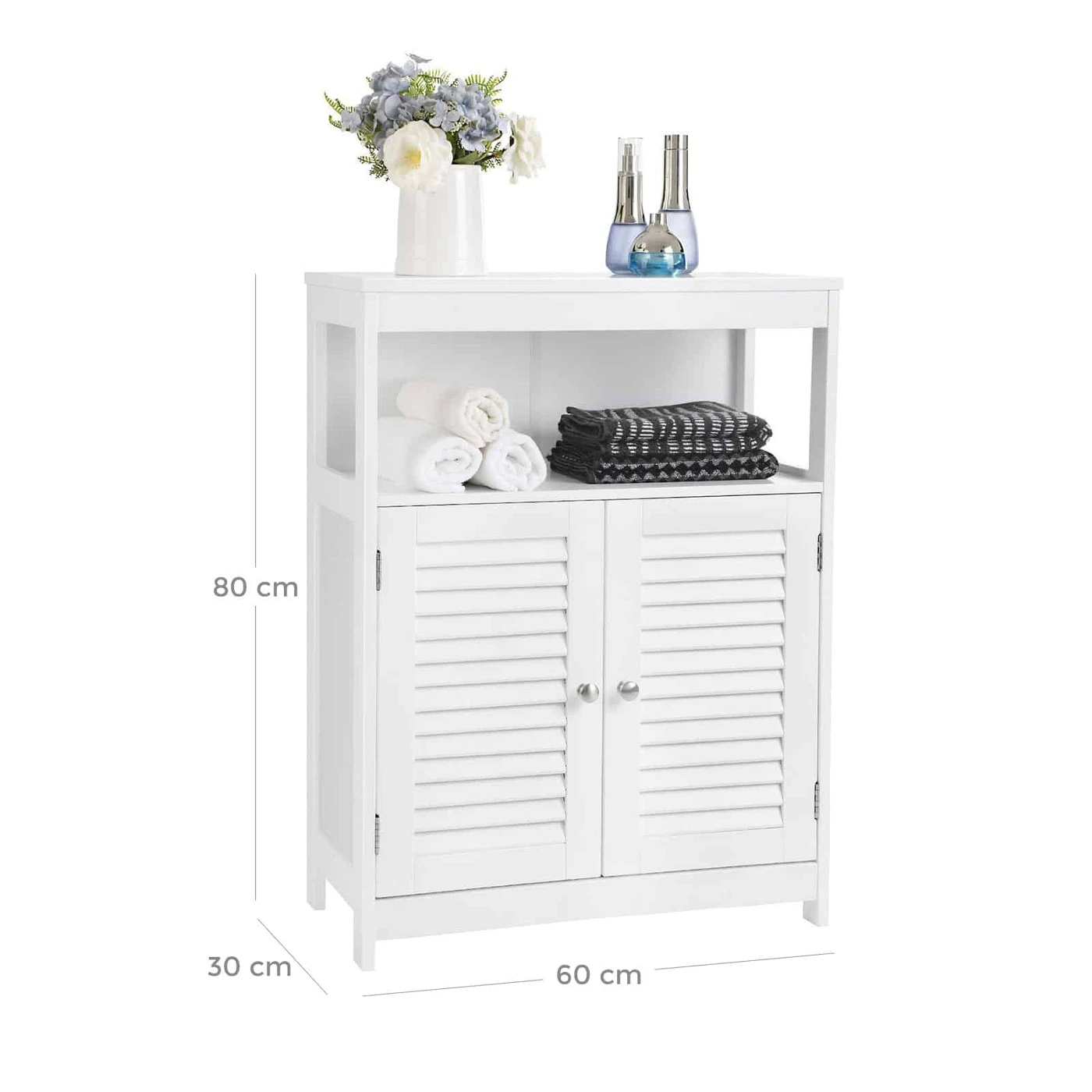 Aprašymas buvo automatiškai išverstas, gali pasitaikyti klaidų.Išsami informacija apie gaminį: - Spalva: balta - Medžiaga: MDF klasė E1 - Matmenys: 60 x 80 x 30 cm (P x A x G) - Atviro skyriaus matmenys: 56 x 18,5 x 28 cm (P x A x G) - Apatinio skyriaus matmenys: 56 x 46 x 28 cm (P x A x G) - Svoris: 12,7 kg Pristatymo komplektas: - 1 x vonios spintelė - 1 x krepšys priedams - 1 x instrukcijos (DE, EN, FR, ES) , IT) VASAGLE Pastabos: - Tiesiog nuvalykite nešvarumus drėgna šluoste - Vaikai turi naudotis vonios spintele tik prižiūrimi suaugusiųjų - Vaikams draudžiama lipti ant spintelės ar žaisti su ja. Pavojus susižeisti!