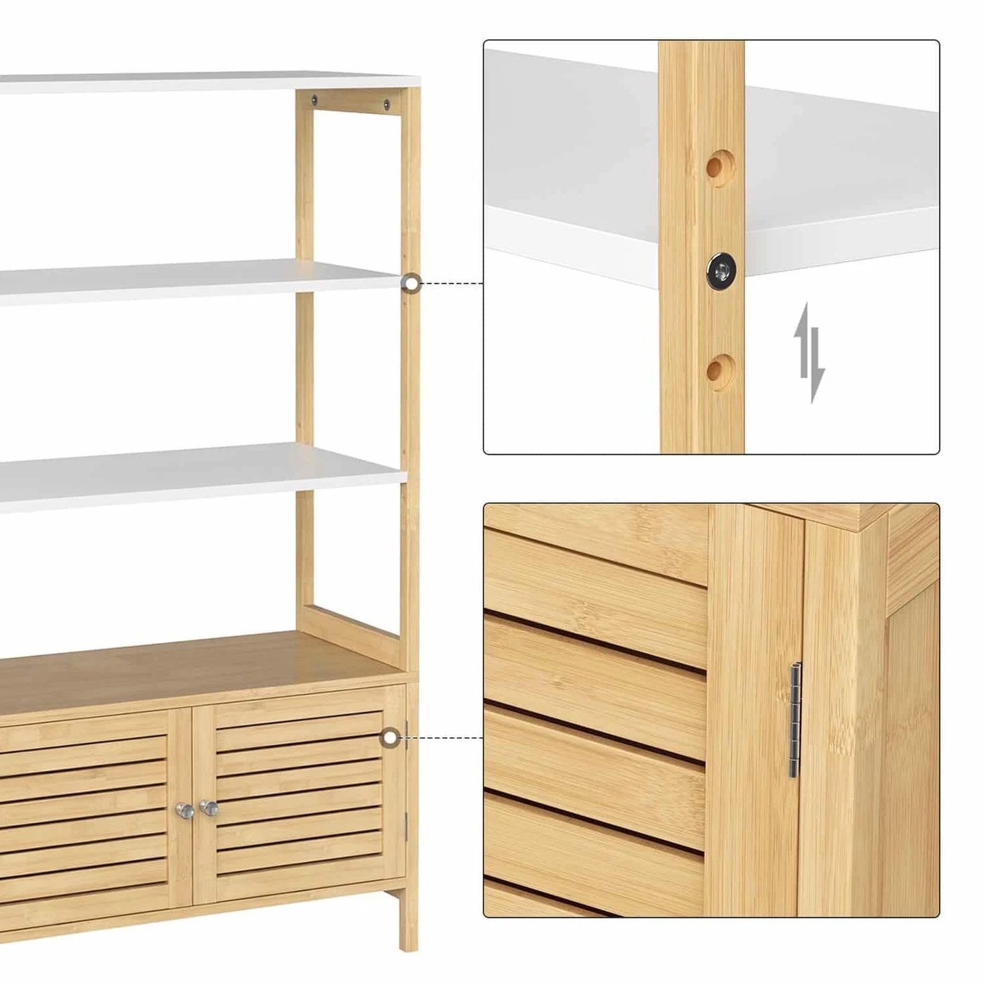 Aprašymas buvo automatiškai išverstas, gali pasitaikyti klaidų.Nėra nieko tokio, kaip po karštos vonios su burbuliukais įsisupti į jaukų rankšluostį ir pasitepti kvapniu losjonu. Šioje spintelėje rasite pakankamai vietos būtiniausioms maudymosi reikmenims.Įvairios laikymo galimybės: priežiūros priemonės ir vonios druskos puikiai dera ant atvirų lentynų. Valymo priemones ir kitus daiktus geriau paslėpti už dvigubų durų. Taip pat ant viršutinės lentynos pastatykite kvapnią žvakę, kad suteiktumėte vonios kambariui romantišką atmosferą Tikras universalus: daugiau nei tik vonios spintelė! Šis baldas taip pat tinka jūsų virtuvėje mikrobangų krosnelei ir puodams laikyti, o svetainėje - knygoms ir paveikslų rėmams. Arba naudokite šią spintelę koridoriuje, kad galėtumėte lengvai pasiekti raktus ir pinigines. Koks tavo planas?Informacija apie gaminį: - Spalva: natūrali balta - Medžiaga: bambukas, MDF (vidutinio tankio medienos plaušų plokštė) - Dydis: 70 x 30 x 120 cm (P x P x A) - Svoris: 16,3 kg - Maksimali statinė apkrova vienam lygiui: 15 kg- Maks. statinė pagrindinės spintelės apkrova: 20 kg Pristatymo komplektas:- 1 x vonios spintelė- 1 x priedų paketas- 1 x apsauga nuo apvirtimo- 1 x rankinė (DE, EN, FR, ES, IT) SONGMICS Pastabos :- Pritvirtinkite šį gaminį su pridedamu apsaugos nuo apvirtimo įtaisu prie sienos, kad užtikrintumėte saugų naudojimą.- Saugumo sumetimais vaikams neleidžiama lipti ar žaisti su gaminiu.