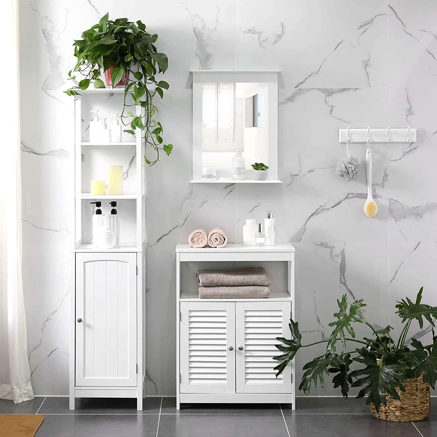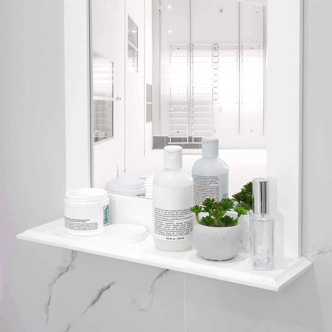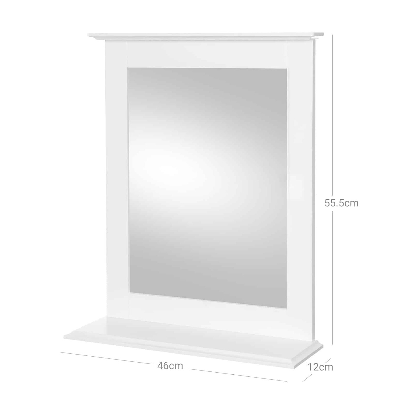 Aprašymas buvo automatiškai išverstas, gali pasitaikyti klaidų.Privalomas daiktas jūsų namuose Ar vis dar trūksta vonios veidrodžio, kuris palengvintų rytinę rutiną? O gal prieš išeinant iš buto reikia veidrodžio prieškambaryje, kad patikrintumėte savo makiažą? Pasitikėkite šiuo sieniniu veidrodžiu iš VASAGLE – elegancija ir funkcionalumas! Paprastas, bet praktiškas Šis minimalistinis baltas sieninis veidrodis, paprastas ir be smulkmenų, elegantiškai papildys jūsų gyvenamąją erdvę. Stiklinis veidrodis padeda pasiruošti, o lentynoje yra vietos dantų šepetėliui, losjonams ir kvepalams. Pagaminta iš aukštos kokybės MDF ir veidrodinio stiklo, šis gaminys taip pat užtikrina ilgą tarnavimo laiką.Informacija apie gaminį: - Spalva: matinė balta - Medžiaga: MDF (vidutinio tankio medienos plaušų plokštė), veidrodinis stiklas - Dydis: 46 x 12 x 55 cm (P x P x A) - Svoris: 2,7 kg - Maksimali statinė apkrova: 2 kg - Lengvas surinkimas : Taip Pristatymo apimtis: - 1 x sieninis veidrodis su lentyna - 1 x konteineris su priedais - 1 x instrukcija (DE, EN, FR, ES, IT) VASAGLE Pastabos: - Kasdieniniam valymui, nuvalykite gaminį drėgnu skudurėliu audinys.- Prieš pirkdami turėtumėte išmatuoti patalpą, kurioje norite montuoti sieninį veidrodį, kad įsitikintumėte, ar gaminys tiks.