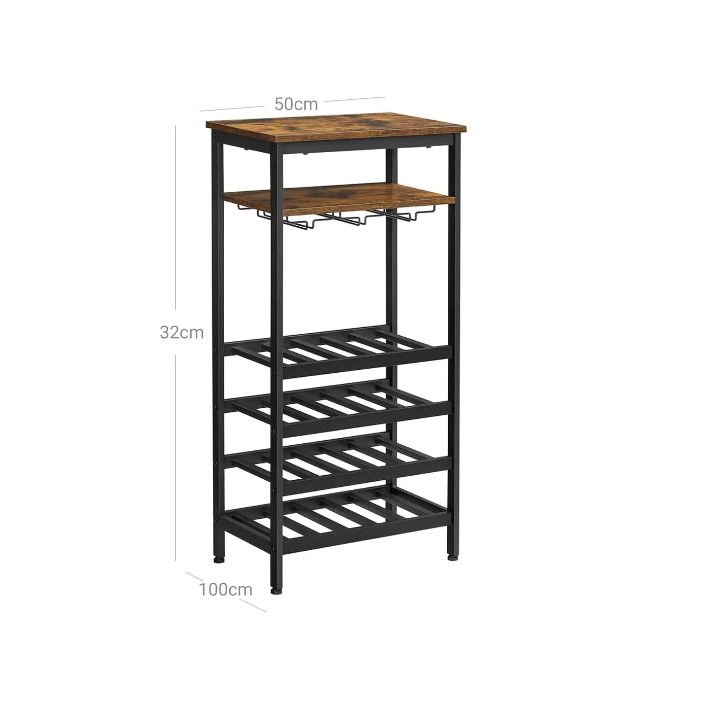 Aprašymas buvo automatiškai išverstas, gali pasitaikyti klaidų.Išsami informacija apie gaminį: - Spalva: vintažinė ruda-juoda - Medžiaga: medžio drožlių plokštės, plienas - Dydis: 50 x 32 x 100 cm (P x P x A) - Svoris: 10,5 kg - Didžiausia statinė viršutinės plokštės apkrova: 25 kg - Didžiausia statinė Atviro skyriaus apkrova: 15 kg - Maksimali statinė apkrova plieninės lentynos lygiui: 15 kgPristatymo komplektas: - 1 x vyno lentyna - 1 x priedų paketas - 1 x apsaugos nuo apvirtimo - 1 x rankinis (DE, EN, IT, FR, ES) VASAGLE Pastabos: - Saugumo sumetimais vaikams draudžiama lipti gaminį arba žaiskite su juo. - Pritvirtinkite šį gaminį prie sienos su komplekte esančiu apsaugančiu nuo apsivertimo, kad neapvirstumėte.