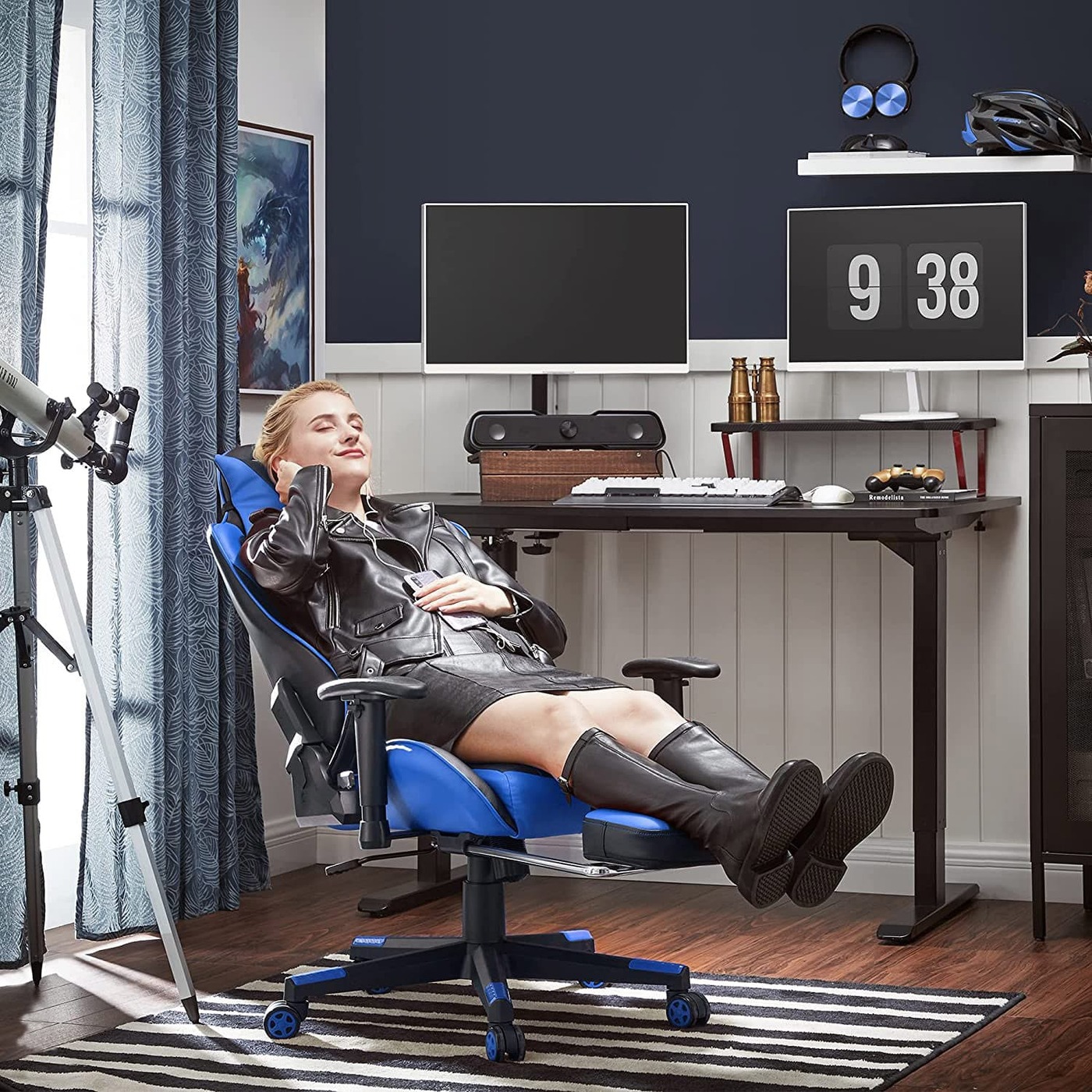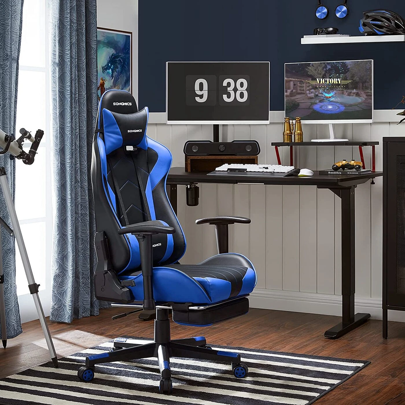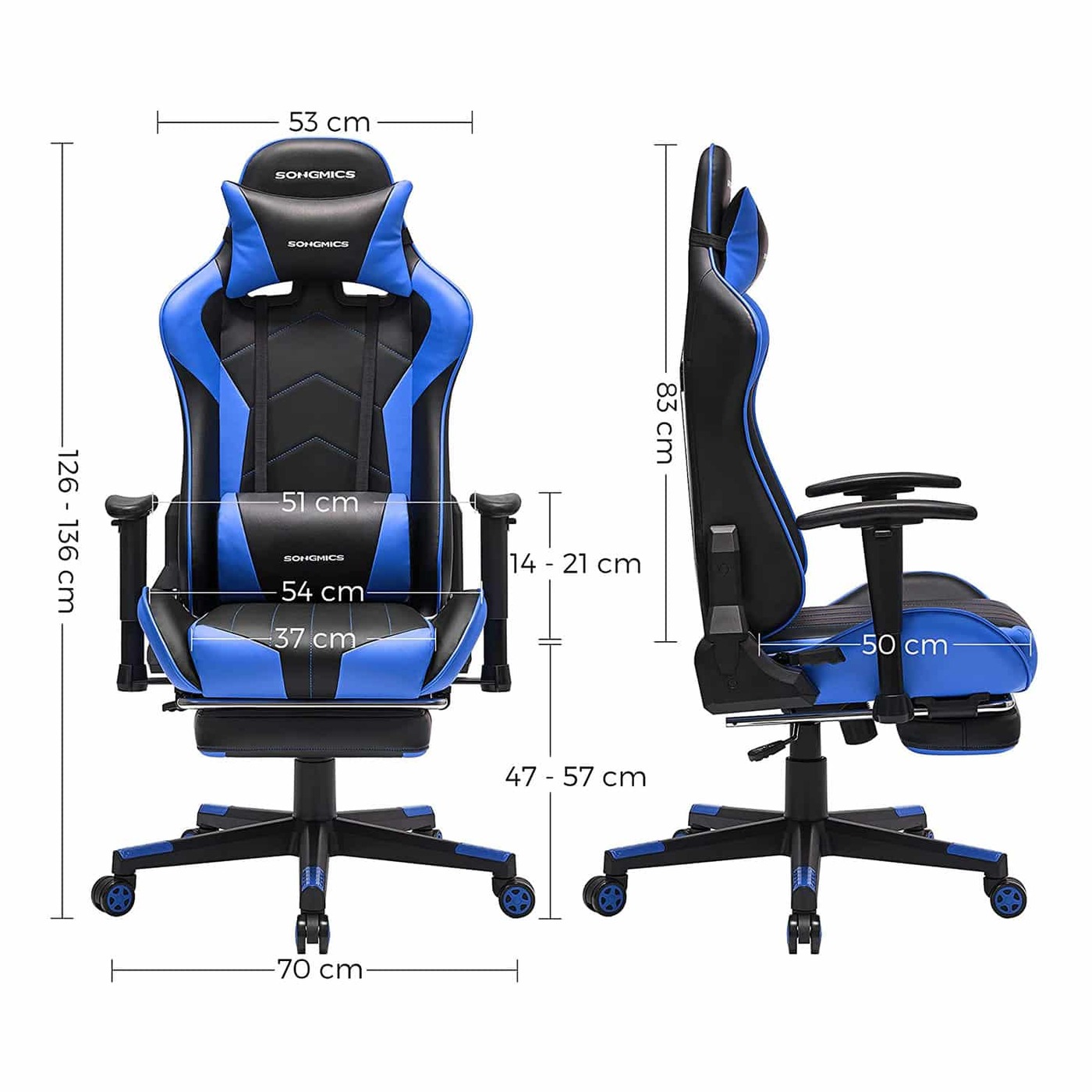 Aprašymas buvo automatiškai išverstas, gali pasitaikyti klaidų.Patogesnis komfortas, padidintas produktyvumas: dėl nepatogios kėdės sukeltas nugaros skausmas trikdo ne tik darbą, bet ir visas kitas sritis. Ši ergonomiška SONGMICS kėdė suteikia jums aukšto lygio komfortą, kad galėtumėte susikoncentruoti į tai, kas svarbu. Kaip galite padidinti savo produktyvumą su šia pasukama kėde? Juodos ir mėlynos spalvos derinys suteikia jums naują energijos užtaisą Sėdynė yra reguliuojamo aukščio ir atlošas reguliuojamas nuo 90° iki 135°, todėl galite rasti idealią sėdėjimo padėtį ekrano aukščio atžvilgiu Minkšta sėdynė, ergonomiškas atlošas, gerai paminkštintos pagalvės ir juosmens atrama – visa tai užtikrina didesnį komfortą dirbant ir žaidžiant Reguliuojamo aukščio porankiai, kairė ir dešinė yra pasukami, visada palaiko dilbius Ar jūsų smegenys jau rūko nuo per daug mąstymo? Galite nusnūsti! Iš po sėdynės ištraukite atramą kojoms, pakreipkite kėdę atgal. Truputį pailsėk! Po to galite grįžti į darbąIšsami informacija apie gaminį: Spalva: juoda-mėlyna Medžiaga: plieninis rėmas, putplasčio paminkštinimas, PU ir PVC apdaila, nailoniniai ratai Bendras kėdės dydis: 68 x 66 x (126-136) cm (P x P x A) Sėdynės aukštis: 47-57 cm Sėdynės matmenys: 50 x 37 cm (I x P) Atlošo matmenys: 53 x 83 cm (I x A) Porankių aukštis (nuo sėdynės): 14-21 cm Porankių aukštis (nuo žemė): 61-78 cmSvoris: 20. 3 kg maks. Statinė apkrova: 150 kg Pristatymo apimtis: 1 x biuro kėdė 1 x priedų paketas 1 x instrukcija SONGMICS Pastabos: Jei kėdę norite naudoti ant medinių grindų, naudokite padėkliuką.