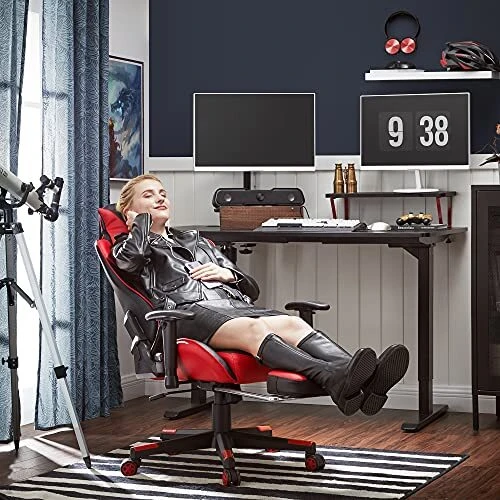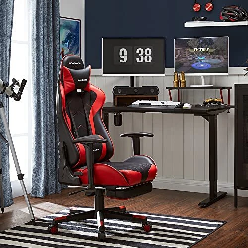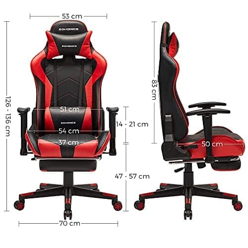 Aprašymas buvo automatiškai išverstas, gali pasitaikyti klaidų.Patogesnis komfortas, padidintas produktyvumas: dėl nepatogios kėdės sukeltas nugaros skausmas trikdo ne tik darbą, bet ir visas kitas sritis. Ši ergonomiška SONGMICS kėdė suteikia jums aukšto lygio komfortą, kad galėtumėte susikoncentruoti į tai, kas svarbu. Kaip galite padidinti savo produktyvumą su šia pasukama kėde? Juodos ir raudonos spalvos derinys suteikia jums naują energijos užtaisą Sėdynė yra reguliuojamo aukščio ir atlošas reguliuojamas nuo 90° iki 135°, todėl galite rasti idealią sėdėjimo padėtį ekrano aukščio atžvilgiu Minkšta sėdynė, ergonomiškas atlošas, gerai paminkštintos pagalvės ir juosmens atrama – visa tai užtikrina didesnį komfortą dirbant ir žaidžiant Reguliuojamo aukščio porankiai, kairė ir dešinė yra pasukami, visada palaiko dilbius Ar jūsų smegenys jau rūko nuo per daug mąstymo? Galite nusnūsti! Iš po sėdynės ištraukite atramą kojoms, pakreipkite kėdę atgal. Truputį pailsėk! Po to galite grįžti į darbąIšsami informacija apie gaminį: Spalva: juoda-raudona Medžiaga: Plieninis rėmas, putplasčio paminkštinimas, PU ir PVC apdaila, nailoniniai ratai Bendras kėdės dydis: 68 x 66 x (126-136) cm (P x P x A) Sėdynės aukštis: 47-57 cm Sėdynės matmenys: 50 x 37 cm (I x P) Atlošo matmenys: 53 x 83 cm (I x A) Porankių aukštis (nuo sėdynės): 14-21 cm Porankių aukštis (nuo žemė): 61-78 cmSvoris: 20. 3 kg maks. Statinė apkrova: 150 kg Pristatymo apimtis: 1 x biuro kėdė 1 x priedų paketas 1 x instrukcija SONGMICS Pastabos: Jei kėdę norite naudoti ant medinių grindų, naudokite padėkliuką.
