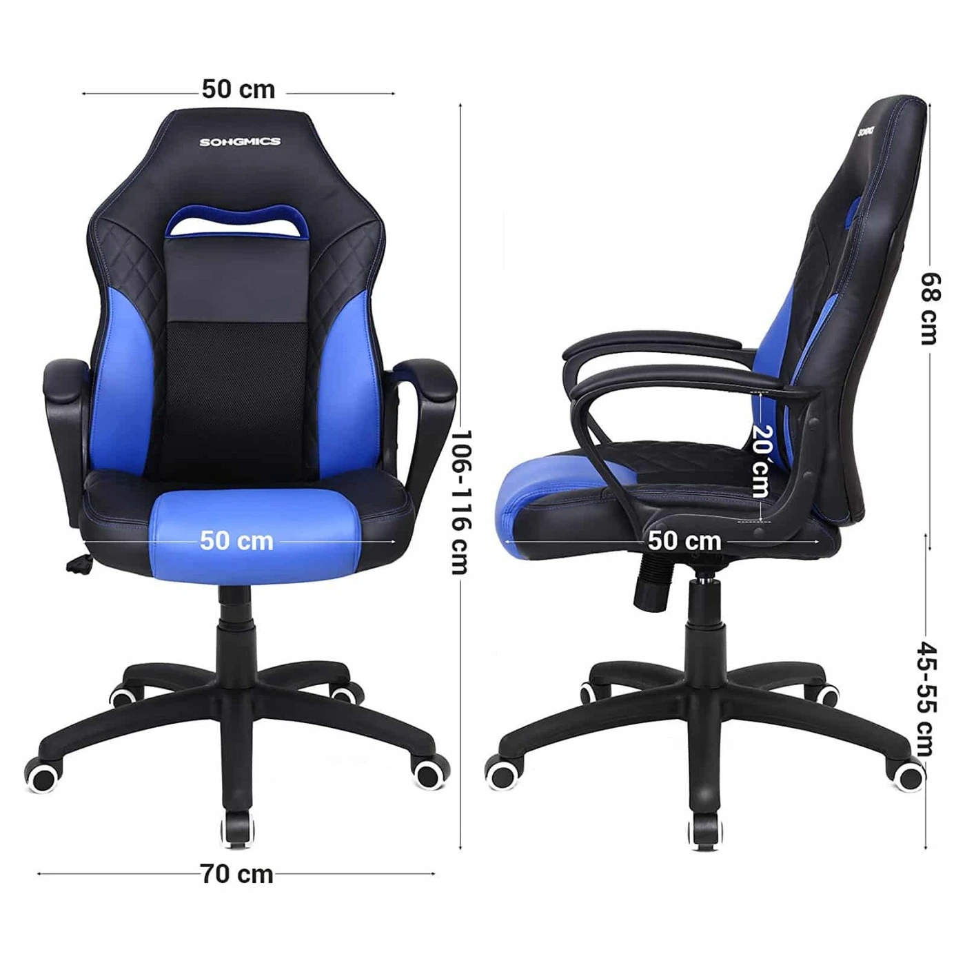 Aprašymas buvo automatiškai išverstas, gali pasitaikyti klaidų.Aistringi žaidėjai ir darbštūs biuro herojai gali tikėtis šių privalumų: - Stilinga išvaizda su dygsniuotu raštu ant dirbtinės odos dangtelio - Patogus, matmenų stabilus porolono paminkštinimas - Kvėpuojantys tinkliniai elementai, užtikrinantys didelį sėdėjimo komfortą - S formos atlošas; užtikrina gerą stuburo juosmeninės dalies ir kaklo fiksavimą – montavimas įmanomas per 10-15 minučių ir jį gali atlikti vienas žmogus – dujų balionas ir dirbtinė oda patikrinti TÜV RheinlandTÜV patikrinta kokybė Remiantis TÜV Rheinland bandymų ataskaita, šios žaidimų kėdės dujų balionas atitinka EN16955:2017 -04, 3 klasės reikalavimus biuro darbo kėdėms skirtų savarankiškai laikančių sėdynės aukščio reguliavimo elementų su energijos kaupikliu atraminiams elementams (bandymo ataskaita Nr. 9465173_06). Šiuo tikslu mūsų tiekėjui buvo suteiktas atitinkamas „tipo patikrintas“ sertifikatas (nr. 182836, galioja iki 2020 m. birželio 24 d.) (ataskaita Nr. 1160039759a 001).Išsami informacija apie gaminį: - Spalva: juoda-mėlyna - Medžiaga: PU dirbtinė oda, porolonas, nailonas - Bendras dydis: 70 x 64 x 106-116 (I x P x A) - Atlošo Plotis cm: 50 cm - Atlošo aukštis: 68 cm - Sėdynės Plotis cm: 50 cm- Sėdynės gylis: 50 cm- Aukštis nuo grindų iki sėdynės: 45-55 cm- Aukštis nuo grindų iki porankio: 65-75 cm- Svoris: 14,5 kg- Maksimali statinė apkrova: 150 kg Pristatymo komplektas: - 1 x žaidimų kėdė - 1 x šešiakampis raktas - 1 x indas su priedais - 1 x rankinis (DE,EN,FR,ES,IT) SONGMICS Pastabos: - Nelaikykite gaminio stiprioje saulės šviesoje. - Laikykite gaminį atokiau nuo aštrių ar aštrių daiktų, kad išvengtumėte žalos.