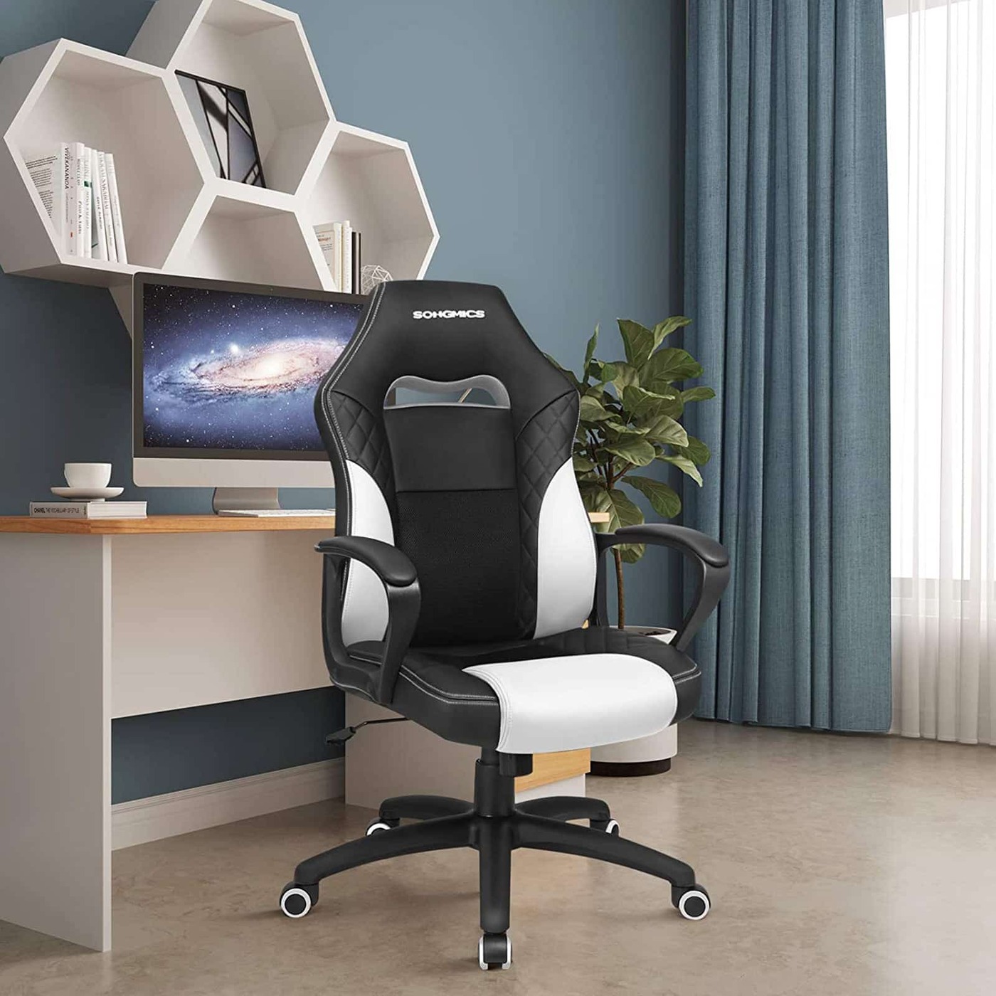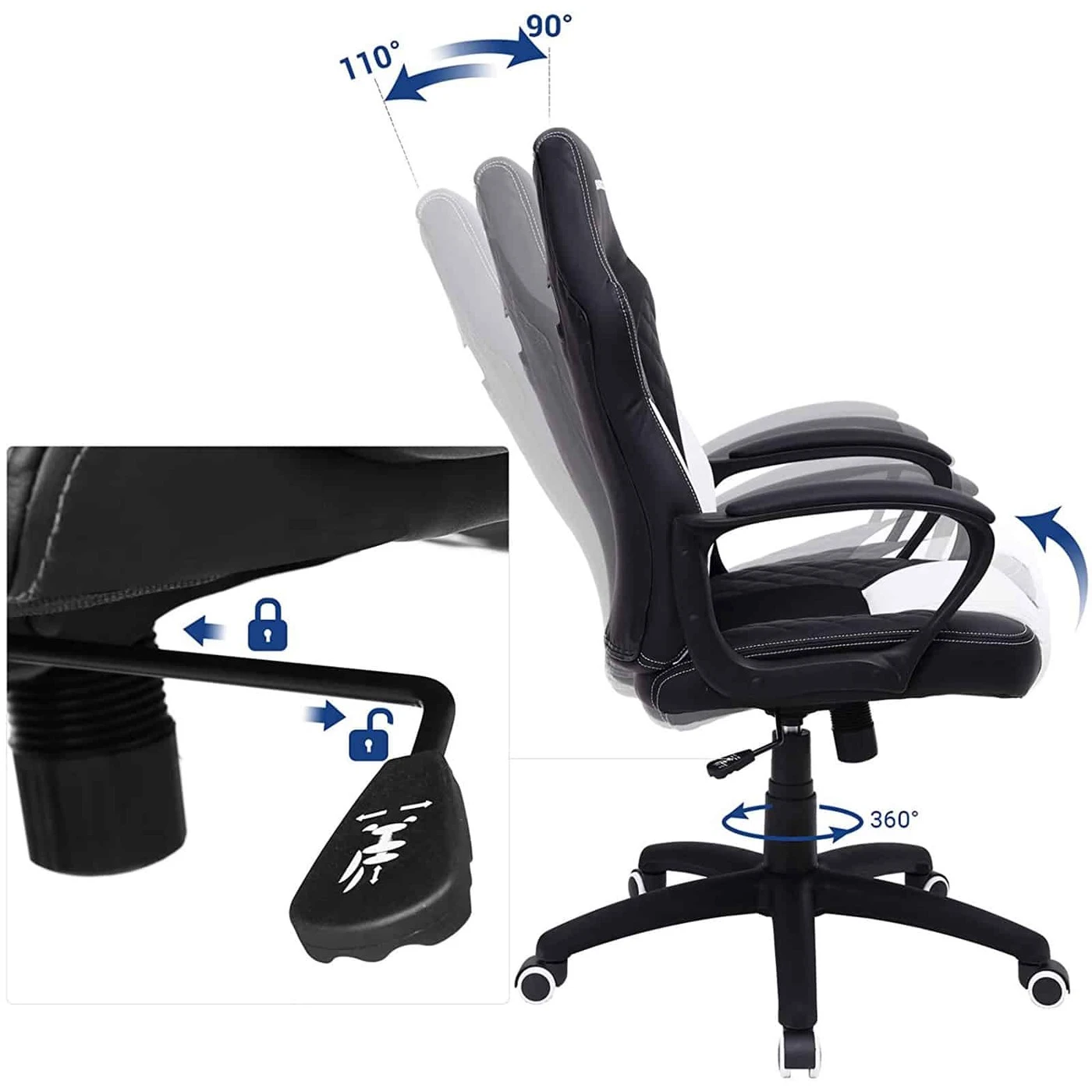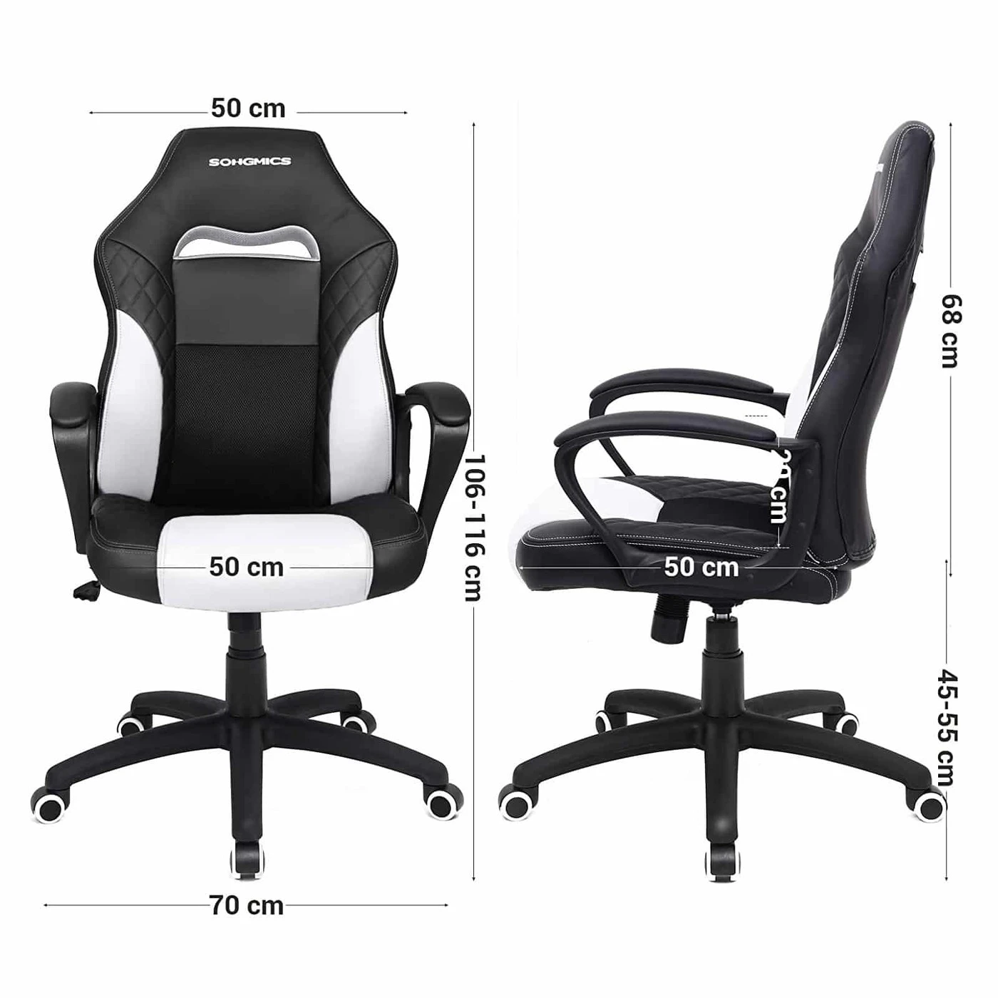 Aprašymas buvo automatiškai išverstas, gali pasitaikyti klaidų.Aistringi žaidėjai ir darbštūs biuro herojai gali tikėtis šių privalumų: - Stilinga išvaizda su dygsniuotu raštu ant dirbtinės odos dangtelio - Patogus, matmenų stabilus porolono paminkštinimas - Kvėpuojantys tinkliniai elementai, užtikrinantys didelį sėdėjimo komfortą - S formos atlošas; užtikrina gerą stuburo juosmeninės dalies ir kaklo fiksavimą – montavimas įmanomas per 10-15 minučių ir jį gali atlikti vienas žmogus – dujų balionas ir dirbtinė oda patikrinti TÜV RheinlandTÜV patikrinta kokybė Remiantis TÜV Rheinland bandymų ataskaita, šios žaidimų kėdės dujų balionas atitinka EN16955:2017 -04, 3 klasės reikalavimus biuro darbo kėdėms skirtų savarankiškai laikančių sėdynės aukščio reguliavimo elementų su energijos kaupikliu atraminiams elementams (bandymo ataskaita Nr. 9465173_06). Šiuo tikslu mūsų tiekėjui buvo suteiktas atitinkamas „tipo patikrintas“ sertifikatas (nr. 182836, galioja iki 2020 m. birželio 24 d.) (ataskaita Nr. 1160039759a 001).Išsami informacija apie gaminį: - Spalva: juoda ir balta - Medžiaga: PU dirbtinė oda, porolonas, nailonas - Bendras dydis: 70 x 64 x 106-116 (I x P x A) - Atlošo Plotis cm: 50 cm - Atlošo aukštis: 68 cm - Sėdynės Plotis cm: 50 cm- Sėdynės gylis: 50 cm- Aukštis nuo grindų iki sėdynės: 45-55 cm- Aukštis nuo grindų iki porankio: 65-75 cm- Svoris: 14,5 kg- Maksimali statinė apkrova: 150 kg Pristatymo komplektas: - 1 x žaidimų kėdė - 1 x šešiakampis raktas - 1 x indas su priedais - 1 x rankinis (DE,EN,FR,ES,IT) SONGMICS Pastabos: - Nelaikykite gaminio stiprioje saulės šviesoje. - Laikykite gaminį atokiau nuo aštrių ar aštrių daiktų, kad išvengtumėte žalos.