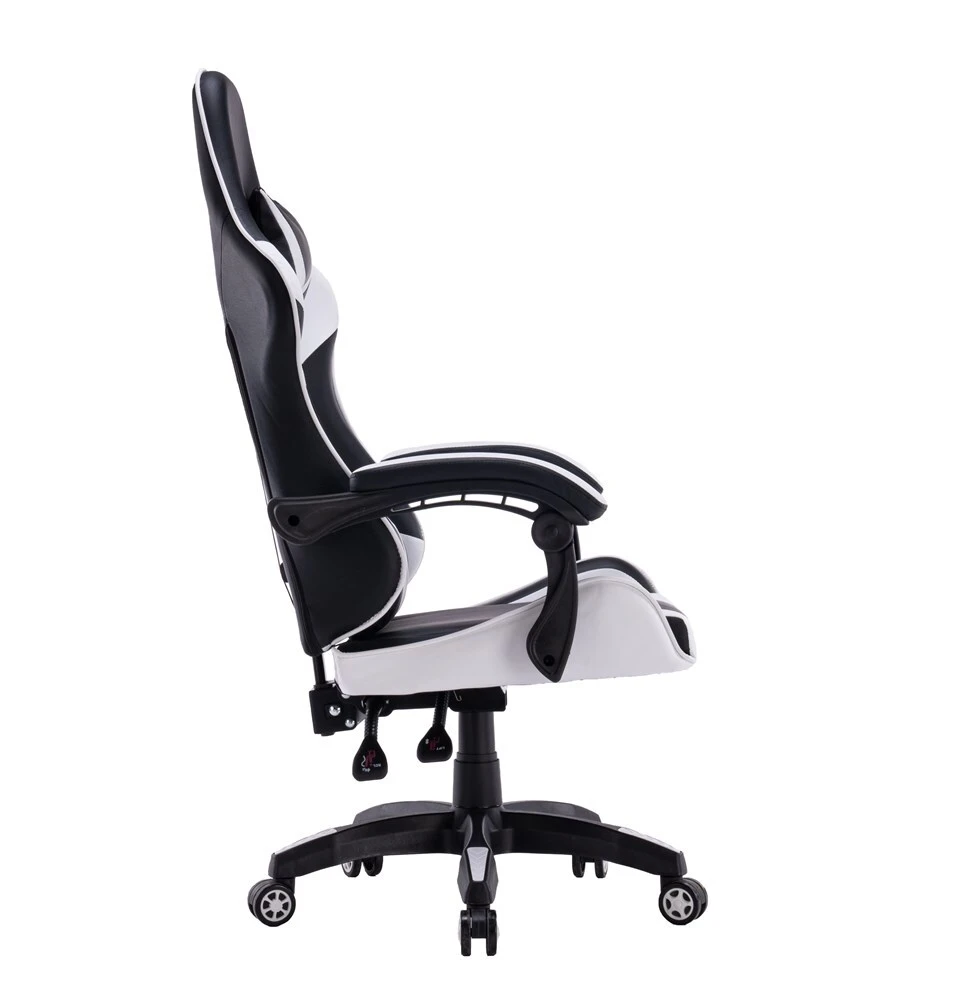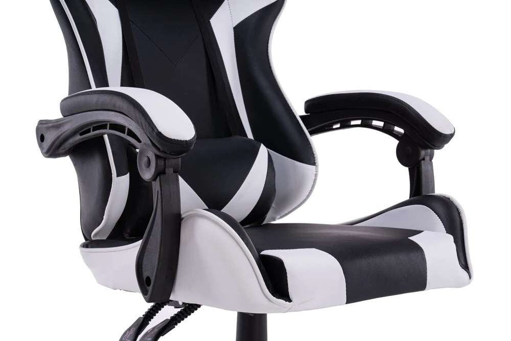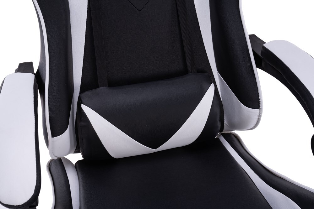 Patogi žaidimų kėdė aptraukta dirbtine oda;Patogūs porankiai;Reguliuojamas kėdės aukštis;Kedės kryžmė chromuota;Kėdės išmatavimai: aukštis – 115-125 cm, plotis – 66 cm, gylis – 62 cm;Sėdimosios kėdės dalies išmatavimai: plotis – 40 cm, gylis – 50 cm;Kėdės aukštis nuo grindų iki sėdimos dalies žemesnėje pozicijoje – 44 cm, pakėlus kėdę – 54 cm;Spalva – juoda, balta;Plastikiniai ratukai;TILT mechanizmas;