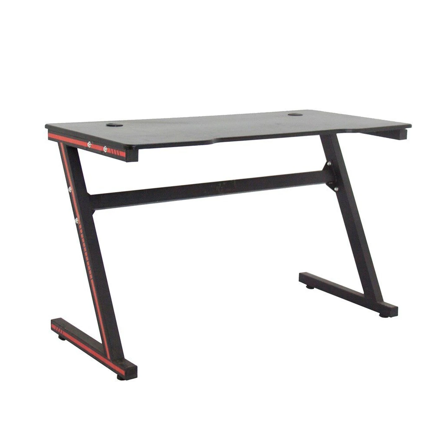 Stilingas žaidimų stalas;Stalo konstrukcija pagaminta iš metalo;Stalviršis pagamintas iš laminuotos medžio dulkių plokštės (MDF);Stalo išmatavimai: ilgis - 120 cm, gylis - 60 cm, aukštis - 75 cm;Platus stalviršis;Angos laidams;Stalo spalva: juoda;