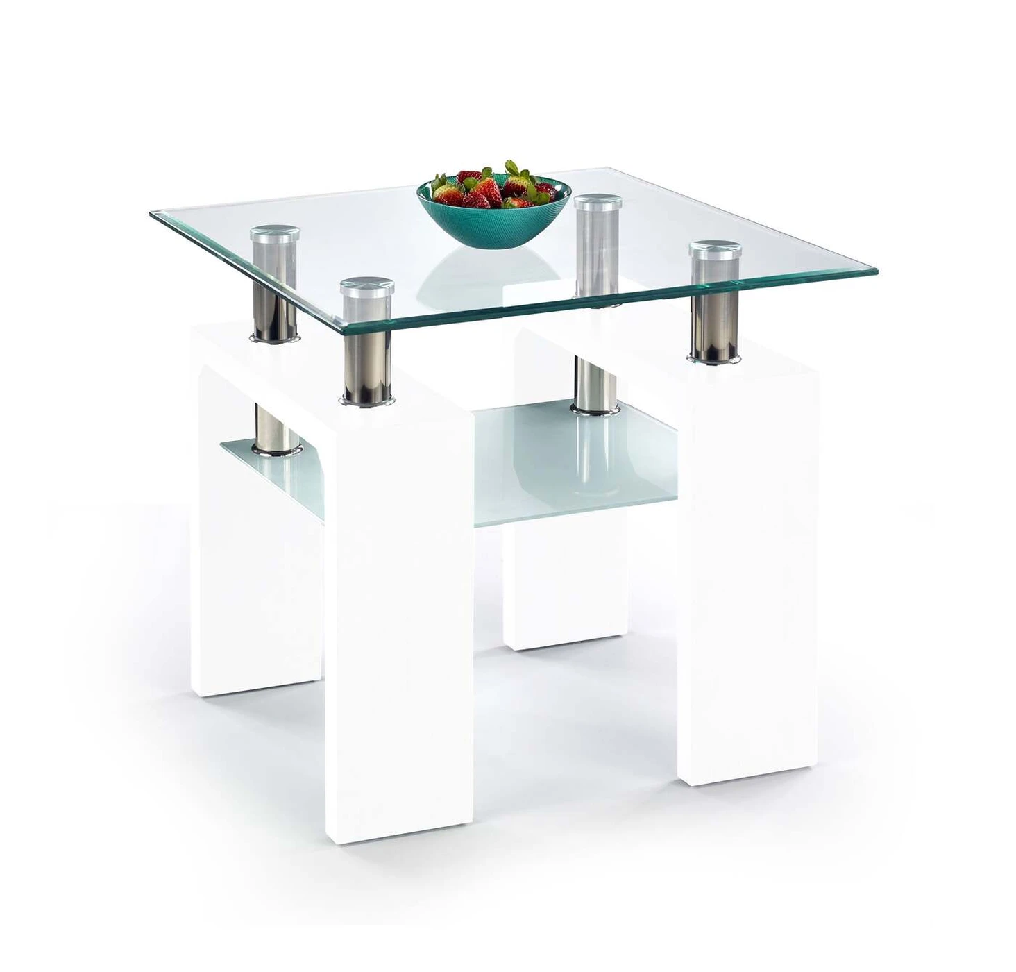 matmenys: 60/60/55 cm, medžiaga: stiklas / lakuotas MDF, spalva: balta