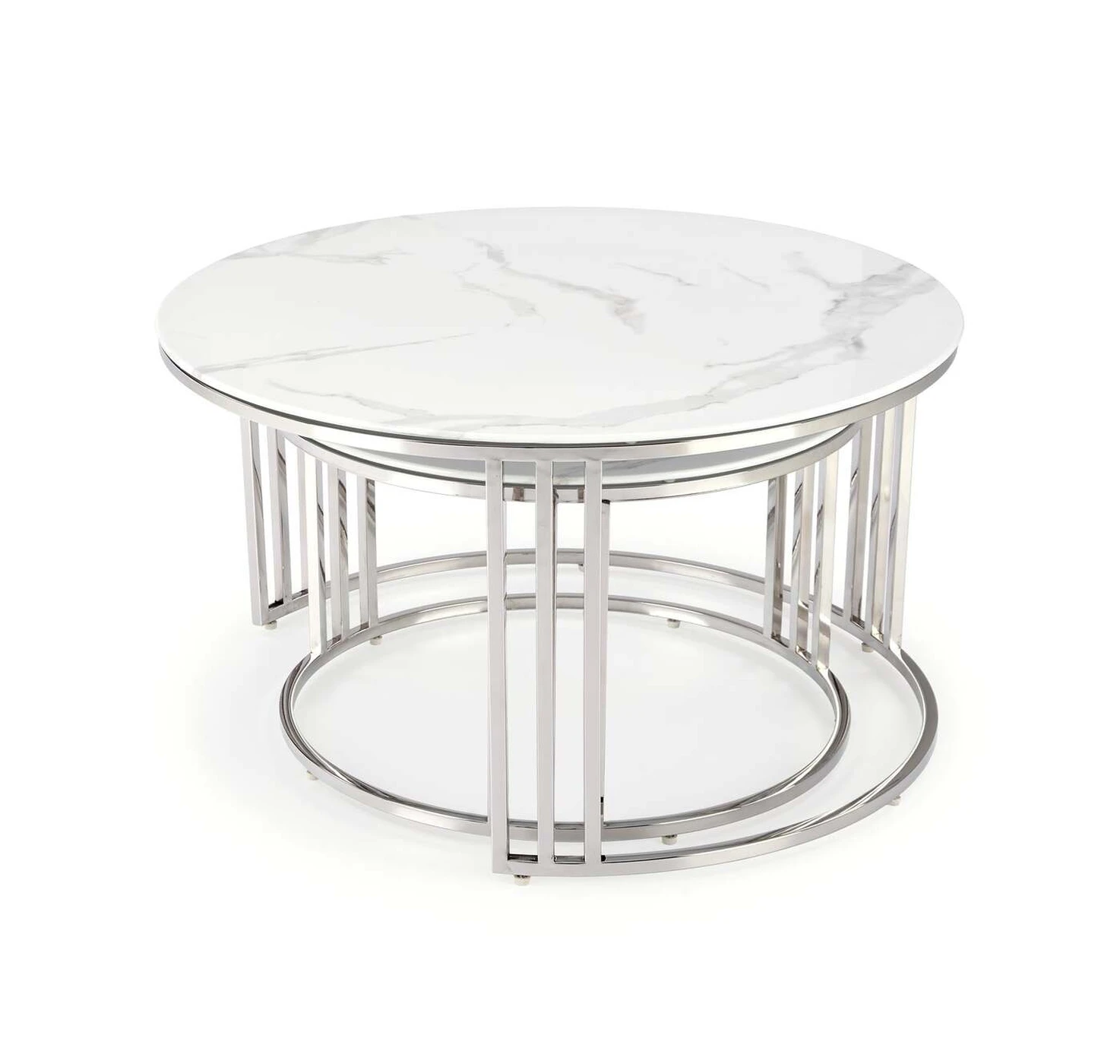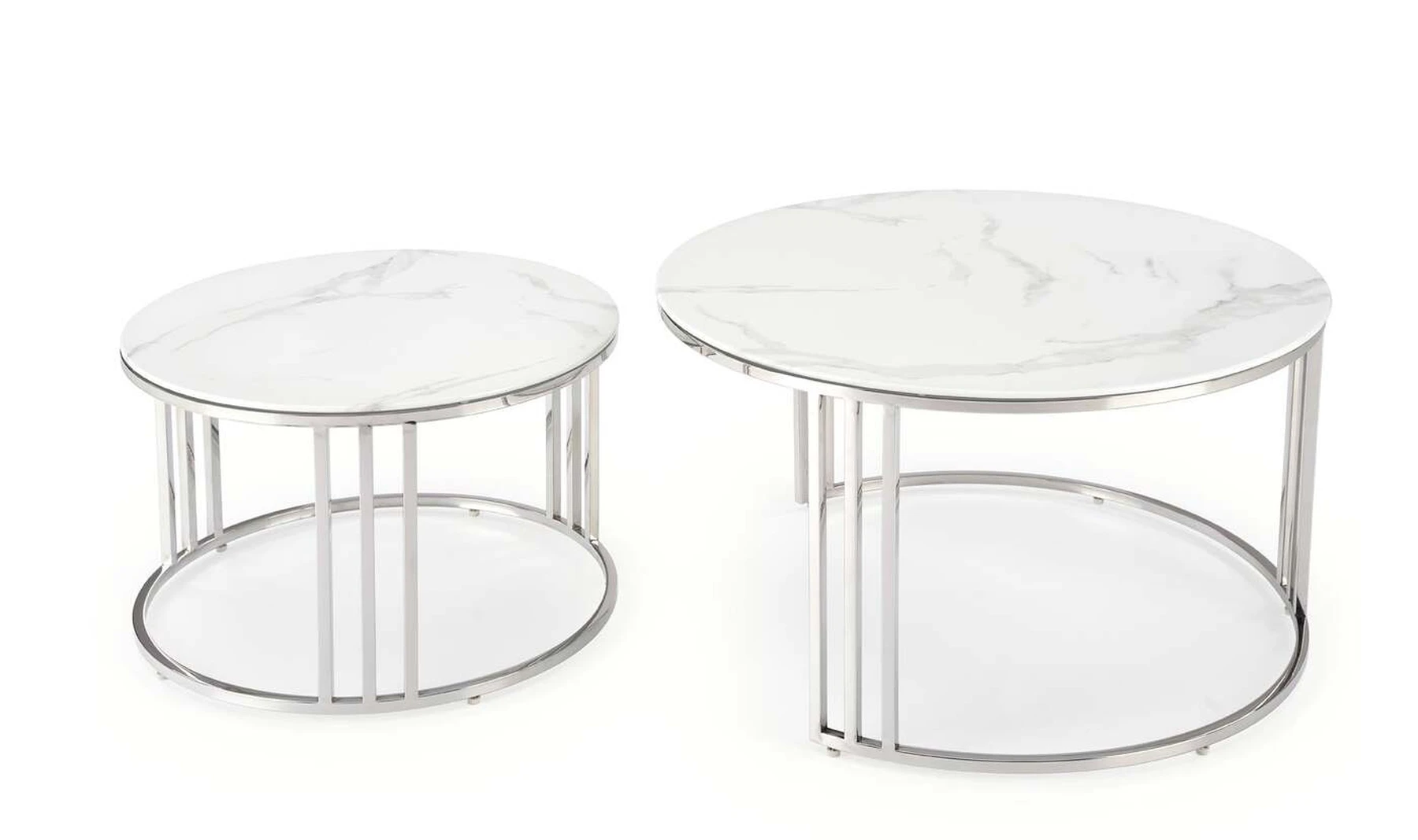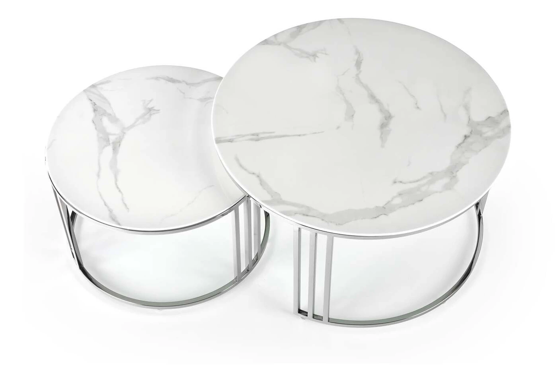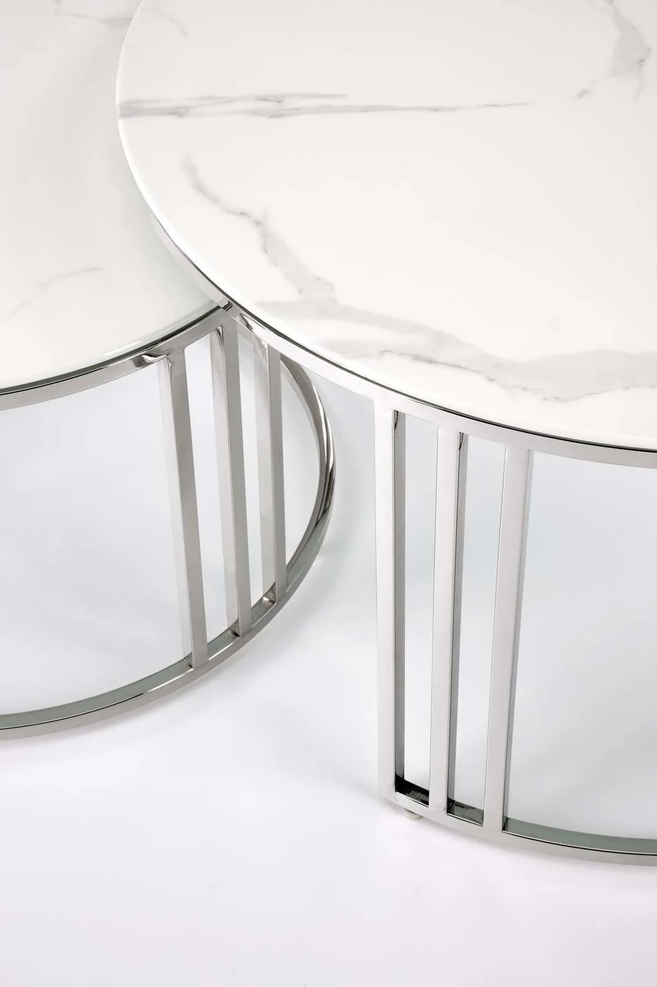 matmenys: 80/45 oraz 60/38 cm, medžiaga: stiklas / nerūdijantis plienas, spalva: baltas marmuras