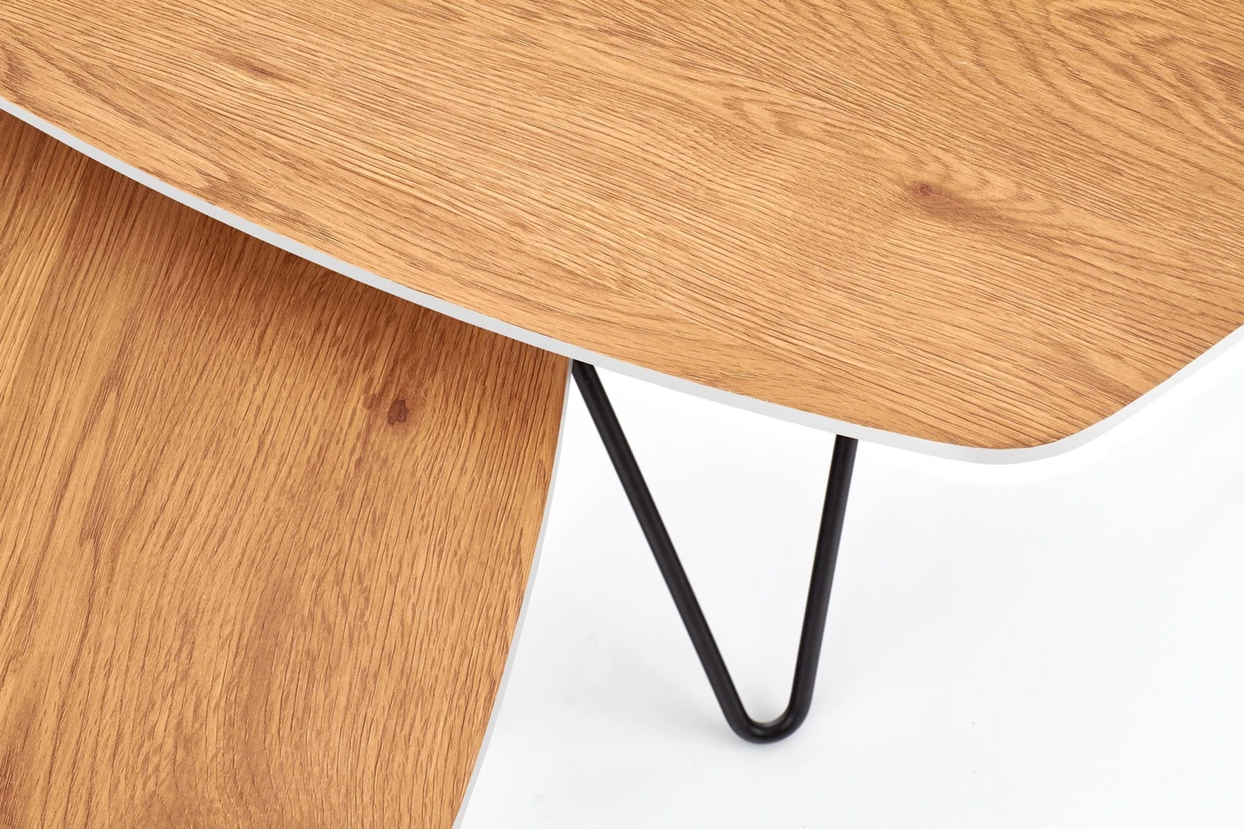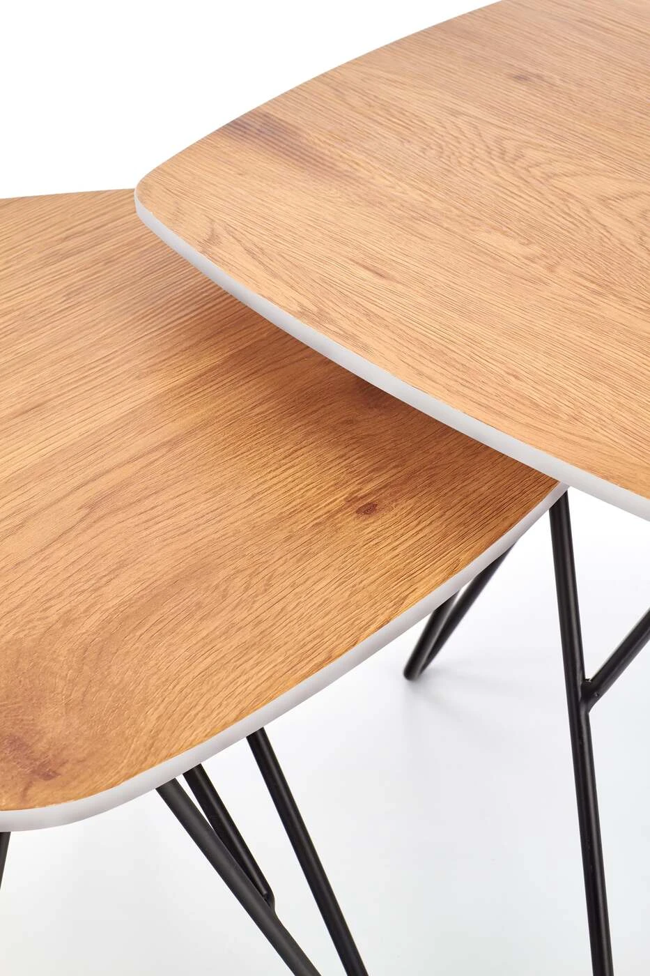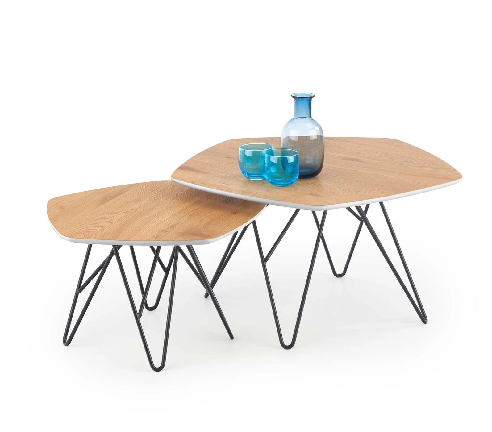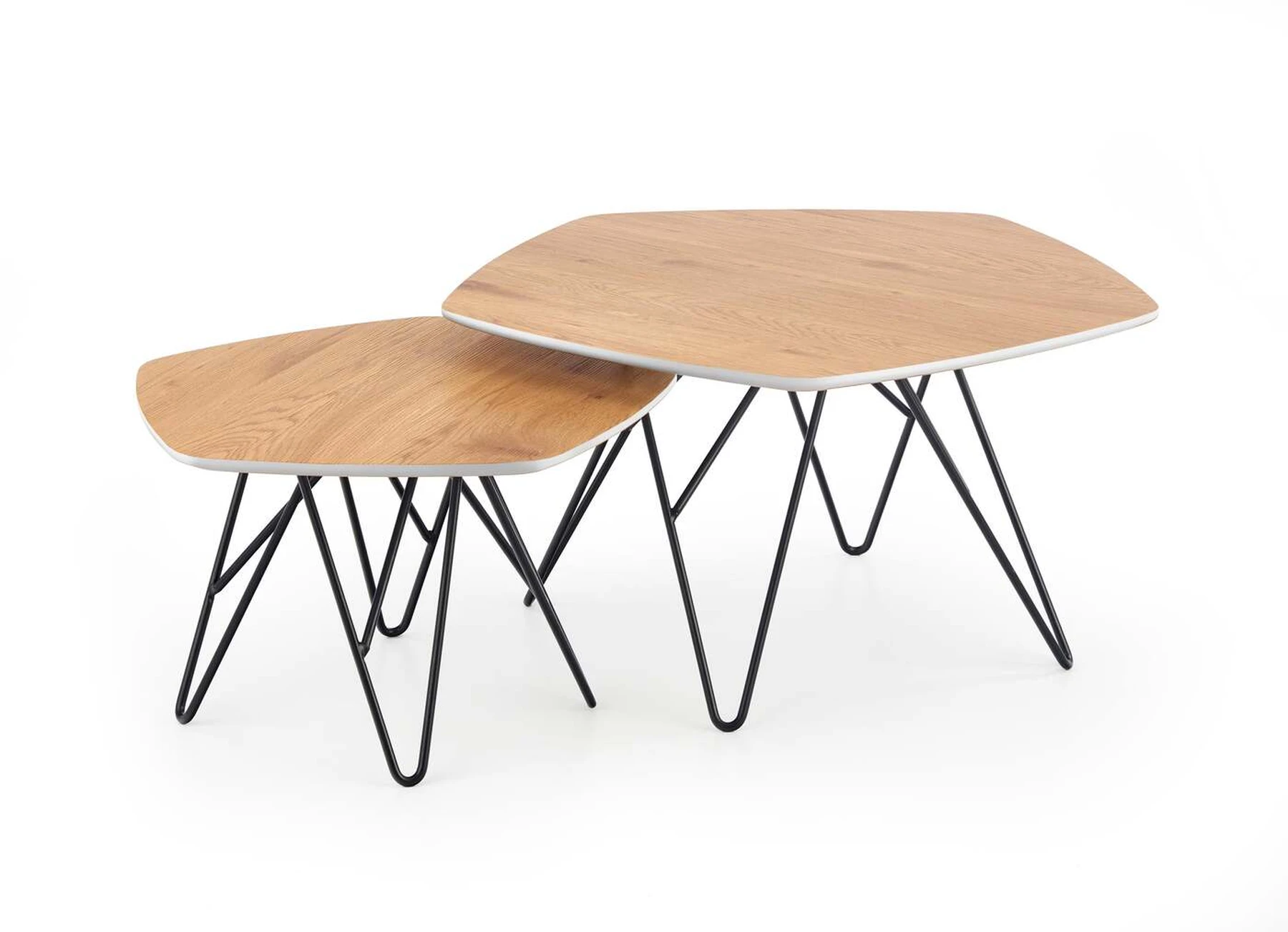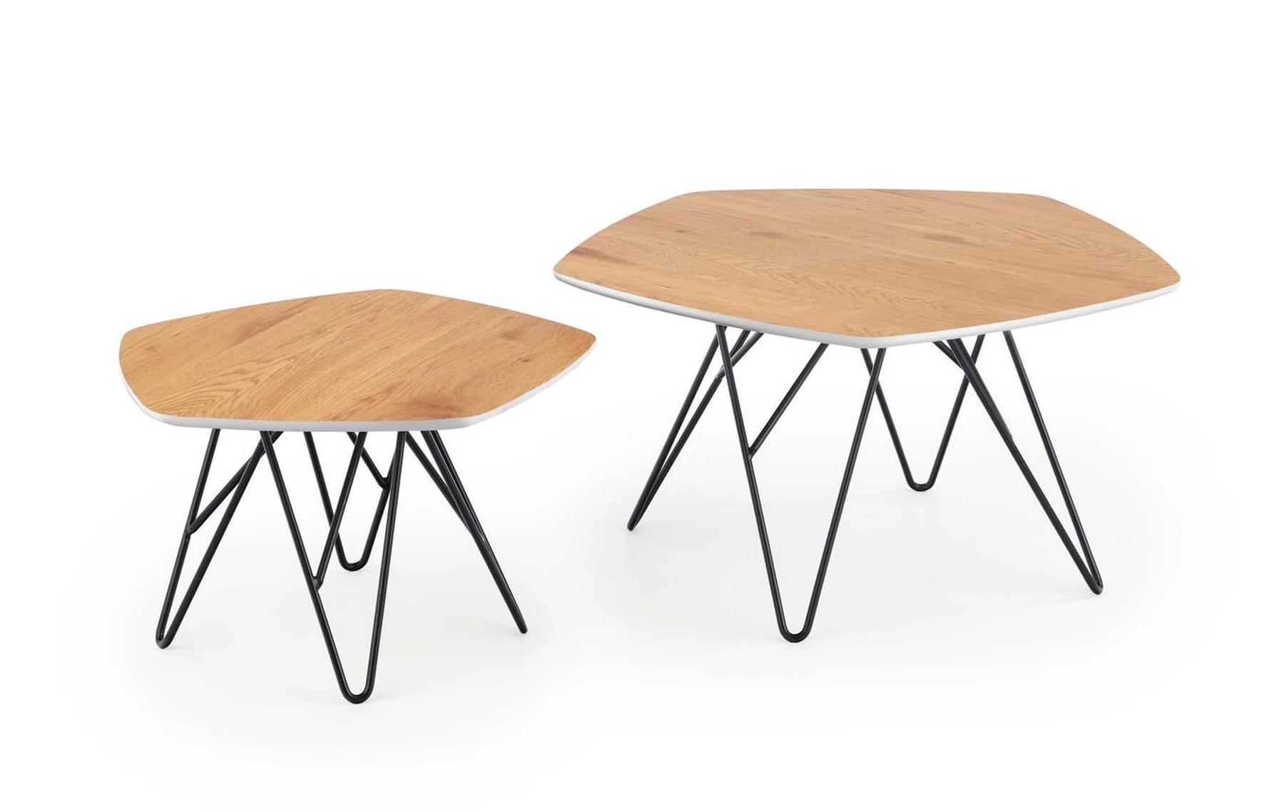 matmenys: didelis - 75/75/41 cm, mažas - 56/56/36 cm, komplektas iš dviejų, medžiaga: laminuotas MDF / lakuotas MDF / milteliniu būdu dažytas plienas, spalva: auksinis ąžuolas / balta / juoda