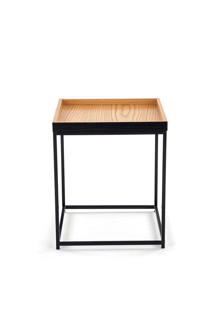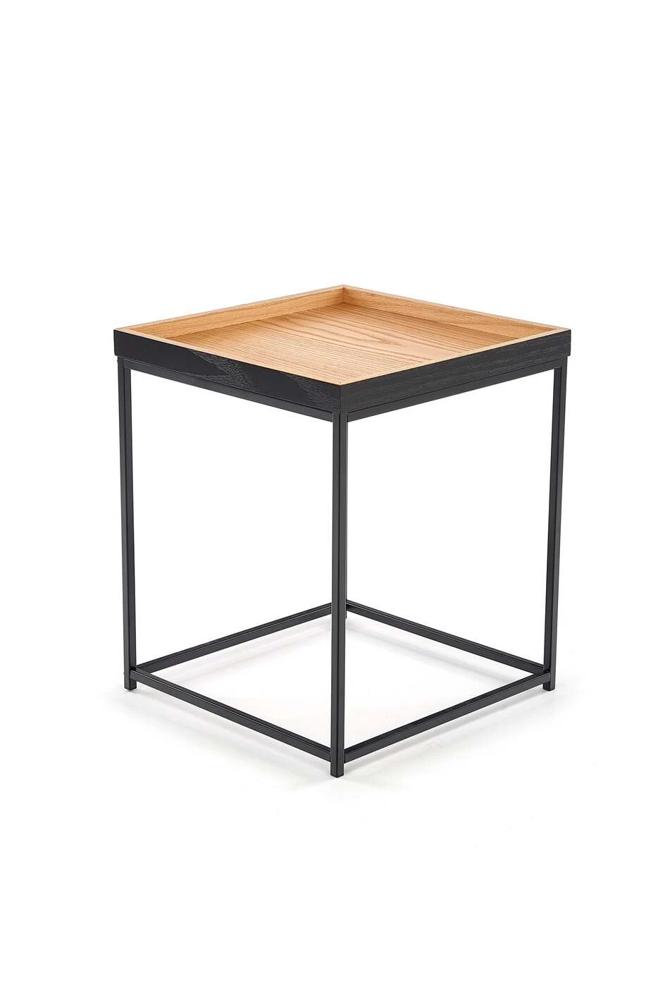 matmenys: 42/42/49 cm, medžiaga: MDF + natūrali fanera / milteliniu būdu dažytas plienas, spalva: natūralus ąžuolas / juoda