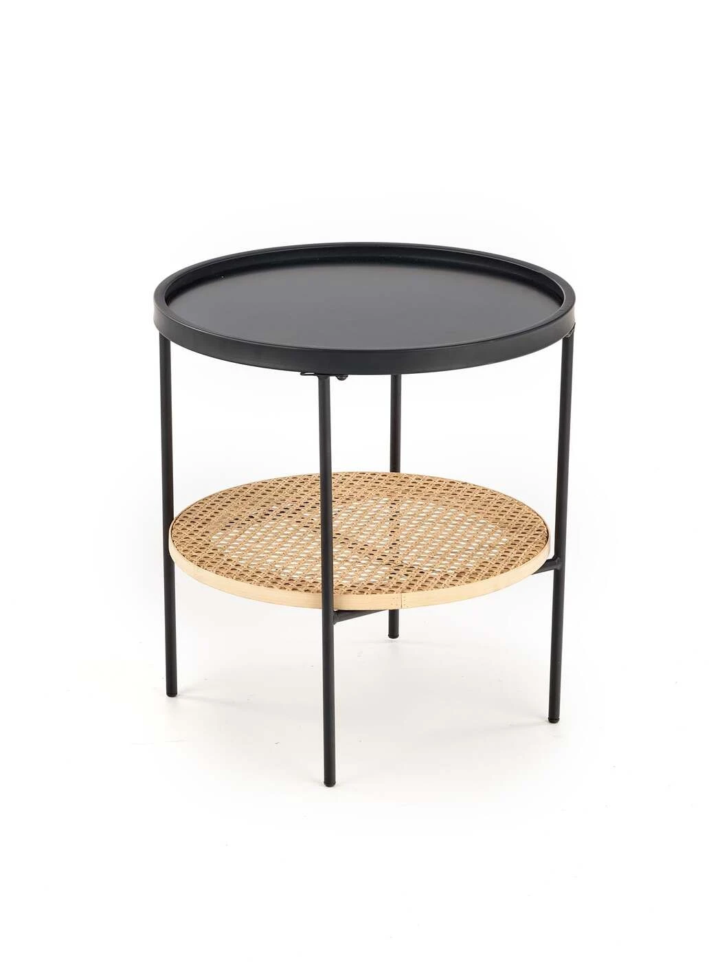 matmenys: 45/45 cm, medžiaga: laminuotas MDF / natūralus rotangas / milteliniu būdu dažytas plienas, spalva: natūrali / juoda