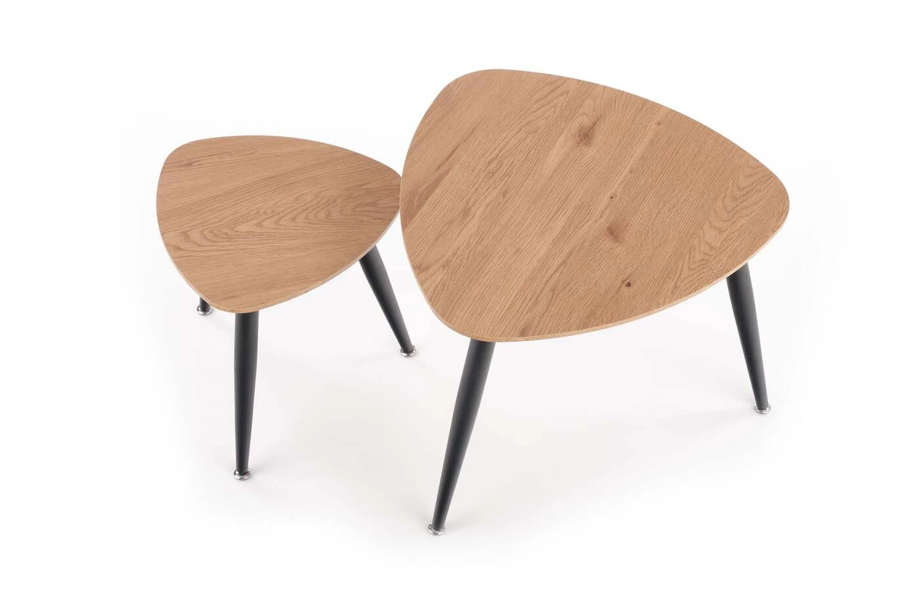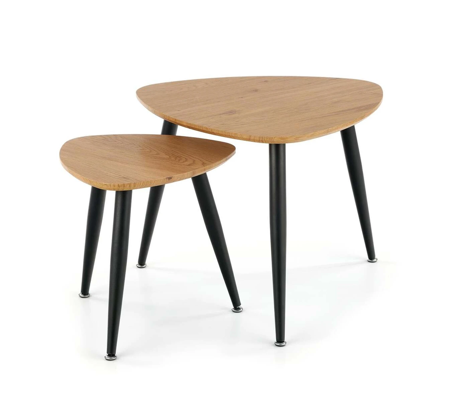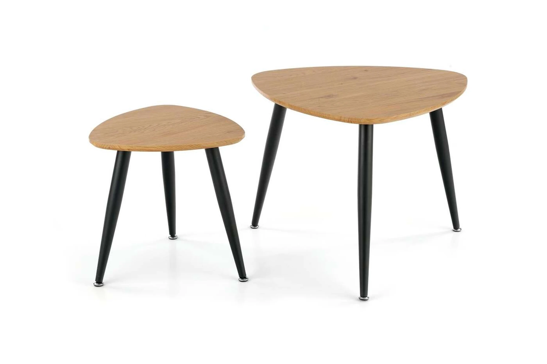 dviejų kavos staliukų komplektas, matmenys: 40/40/41 cm ir 60/60/49 cm, medžiaga: laminuotas MDF / milteliniu būdu dažytas plienas, spalva: auksinis ąžuolas / juoda