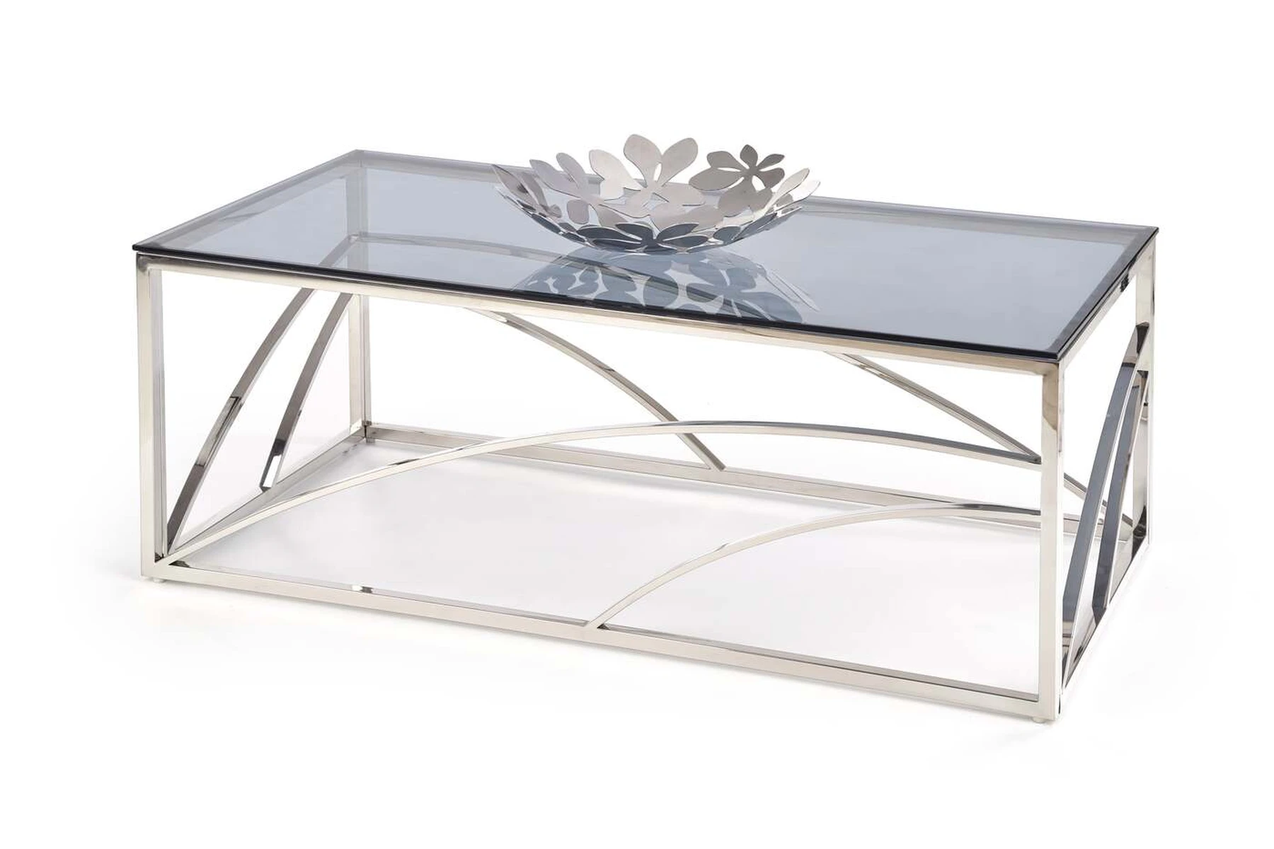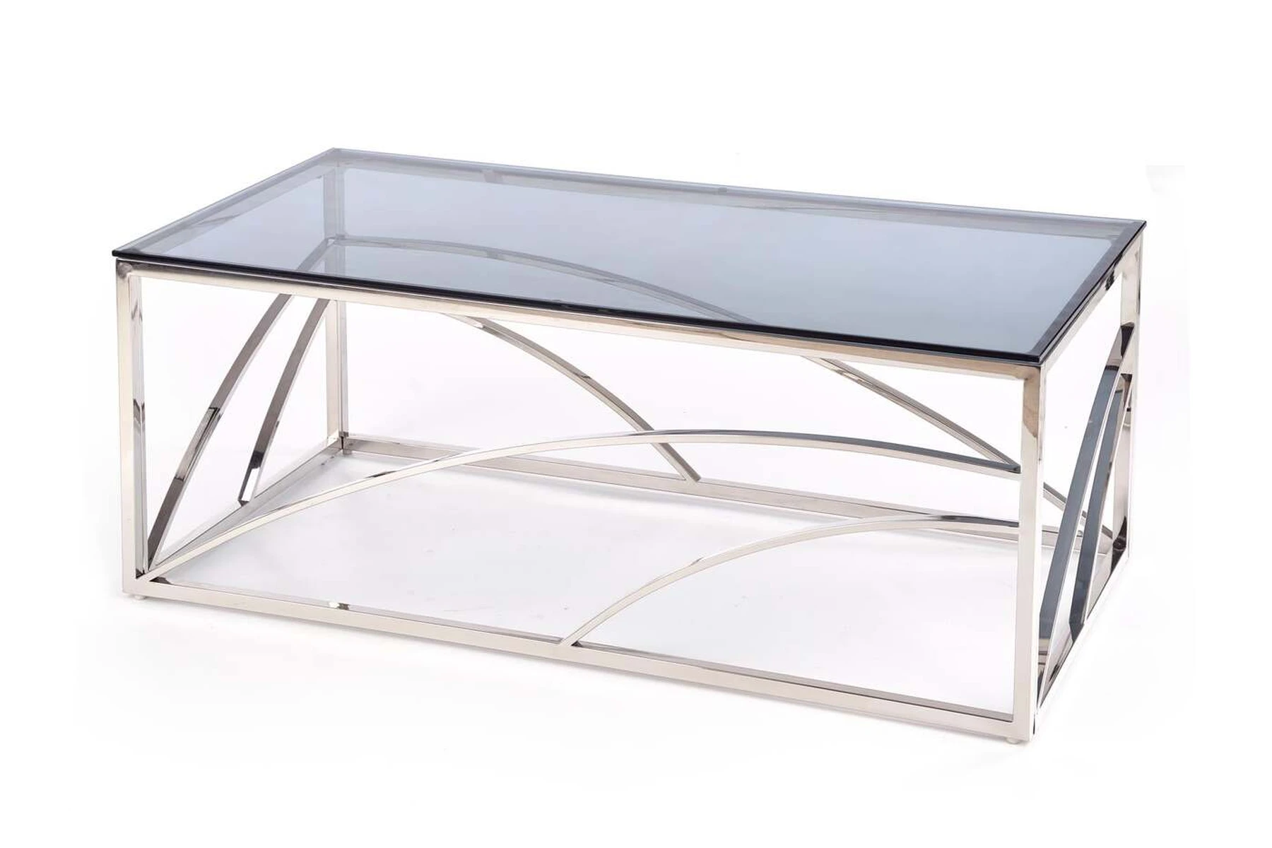 matmenys: 120/60/45 cm, medžiaga: stiklas / nerūdijantis plienas, spalva: rūkytas / sidabras