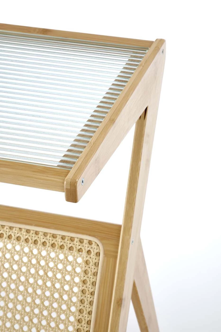 matmenys: 45/46/56 cm, medžiaga: stiklas / natūralus rotangas / bambuko masyvas, spalva: natūrali