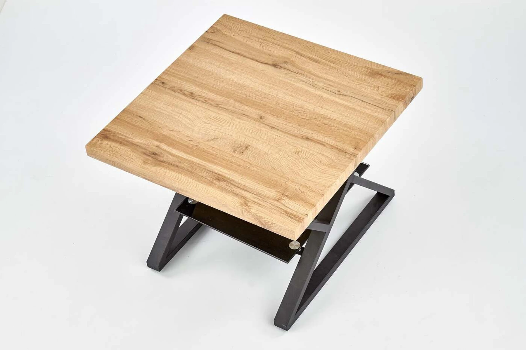matmenys: 60/60/45 cm, medžiaga: laminuotas MDF / stiklas / milteliniu būdu dažytas plienas, spalva: natūralus ąžuolas / juoda