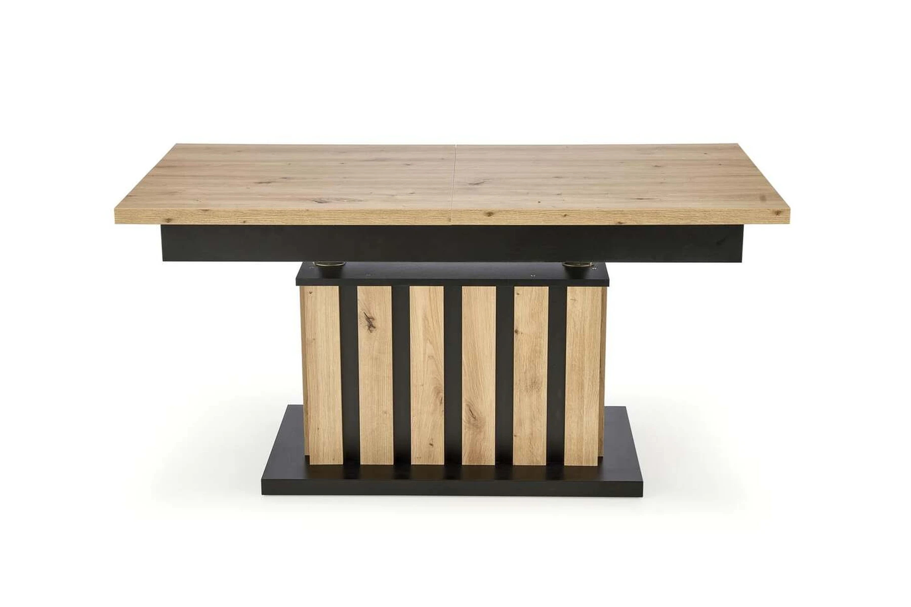 matmenys: 130-170/65/65-82 cm, pakeliamas kavos staliukas, medžiaga: laminuota medžio drožlių plokštė, spalva: amatinis ąžuolas / juoda