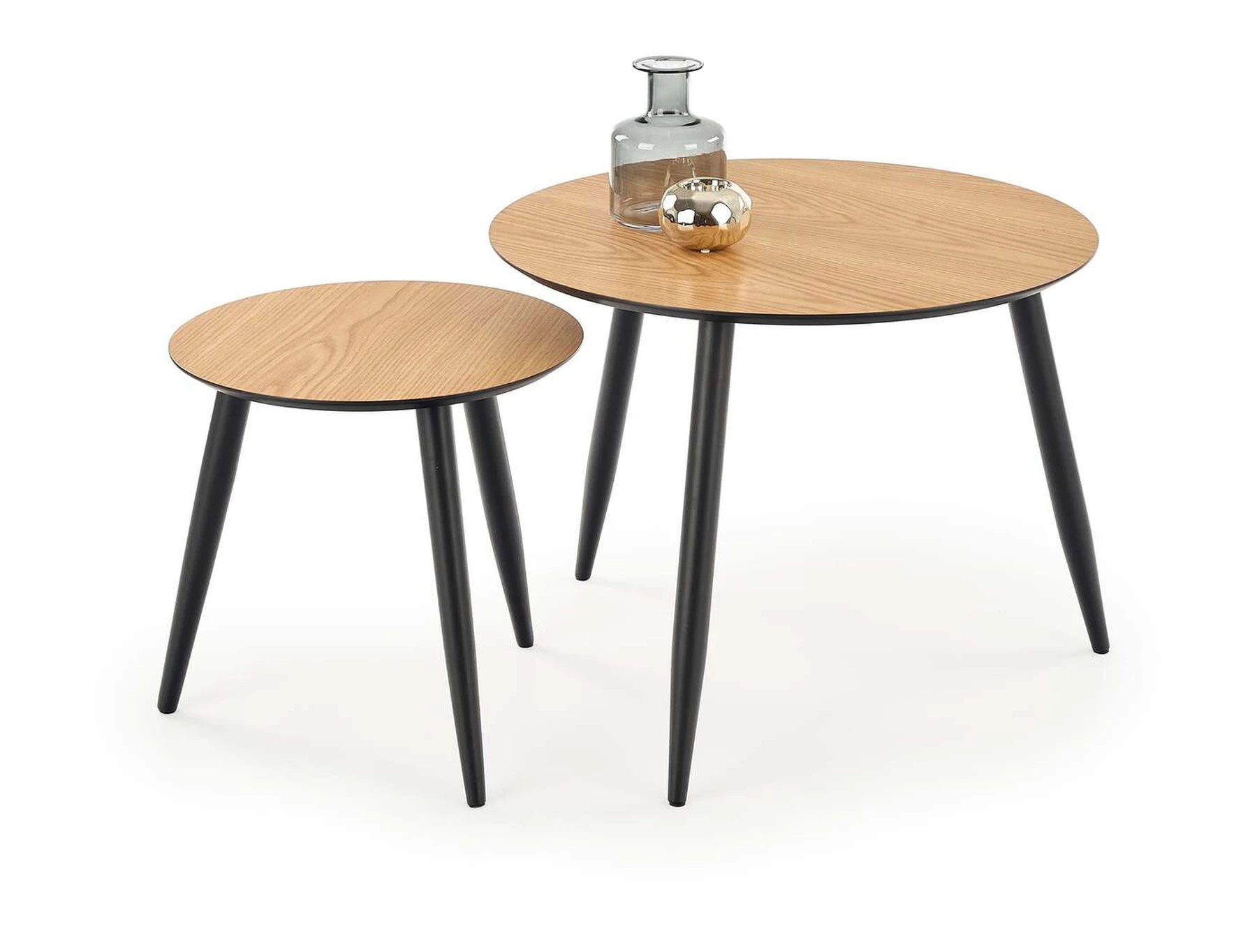rinkinys iš dviejų, matmenys: fi40/40 cm ir fi60/48 cm, medžiaga: MDF + natūrali fanera / medžio masyvas, spalva: auksinis ąžuolas / juoda
