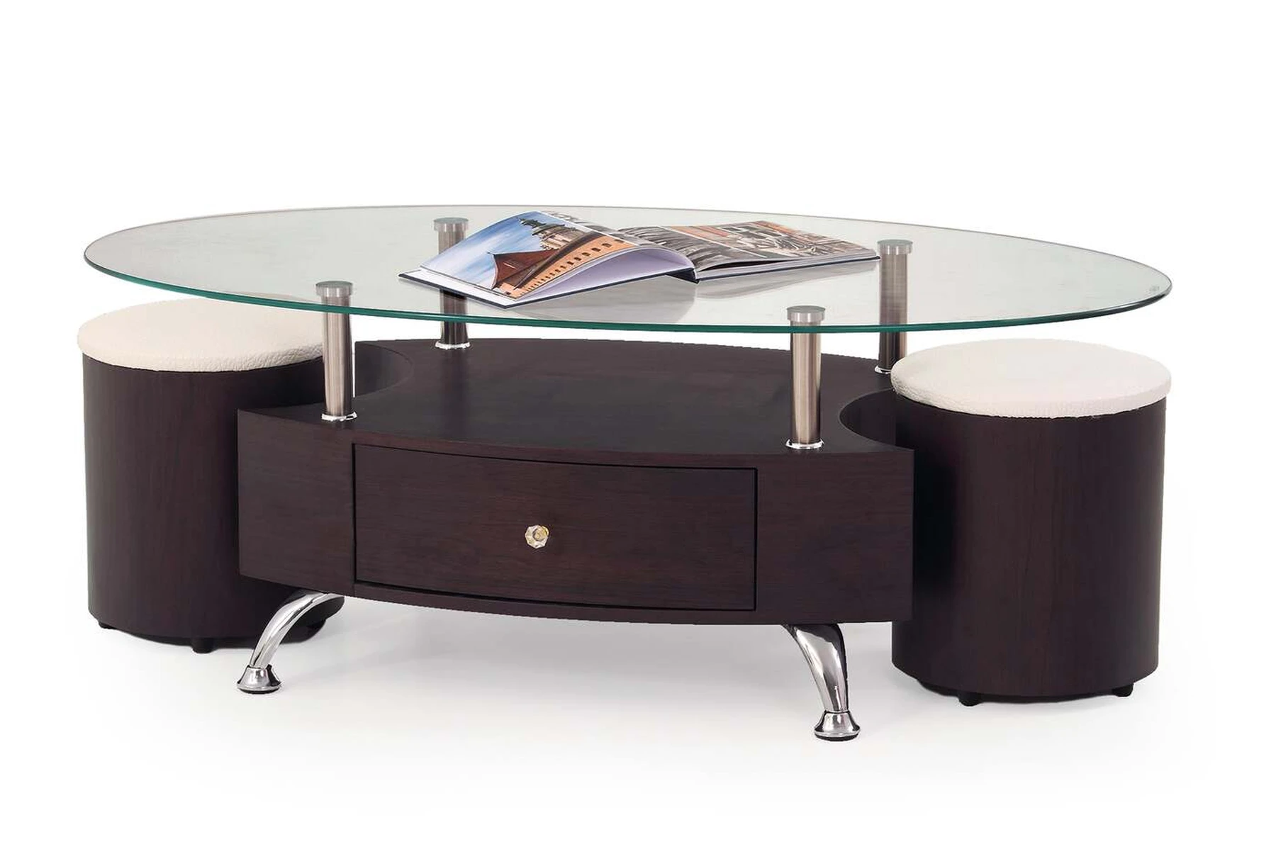 kavos staliukas su pufais, matmenys: 120/65/44 cm, medžiaga: stiklas / laminuotas MDF, spalva: venge