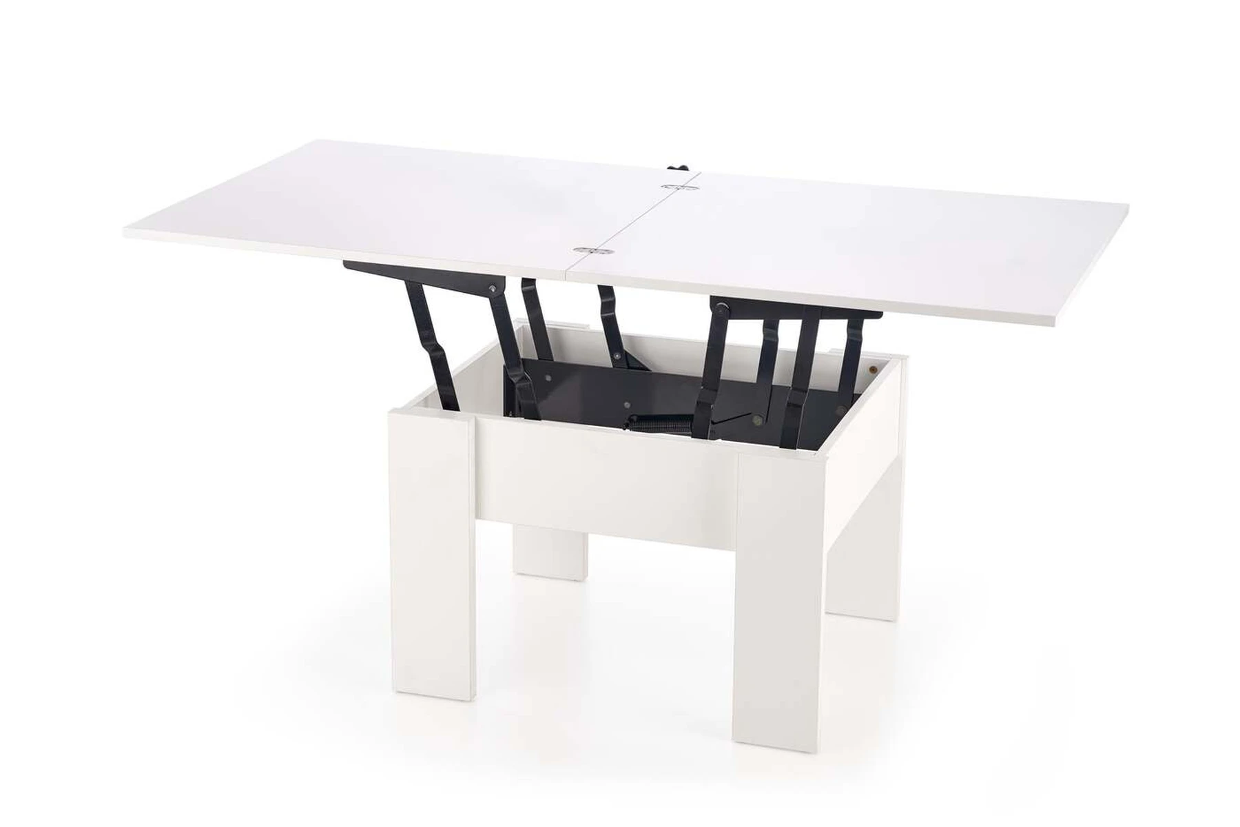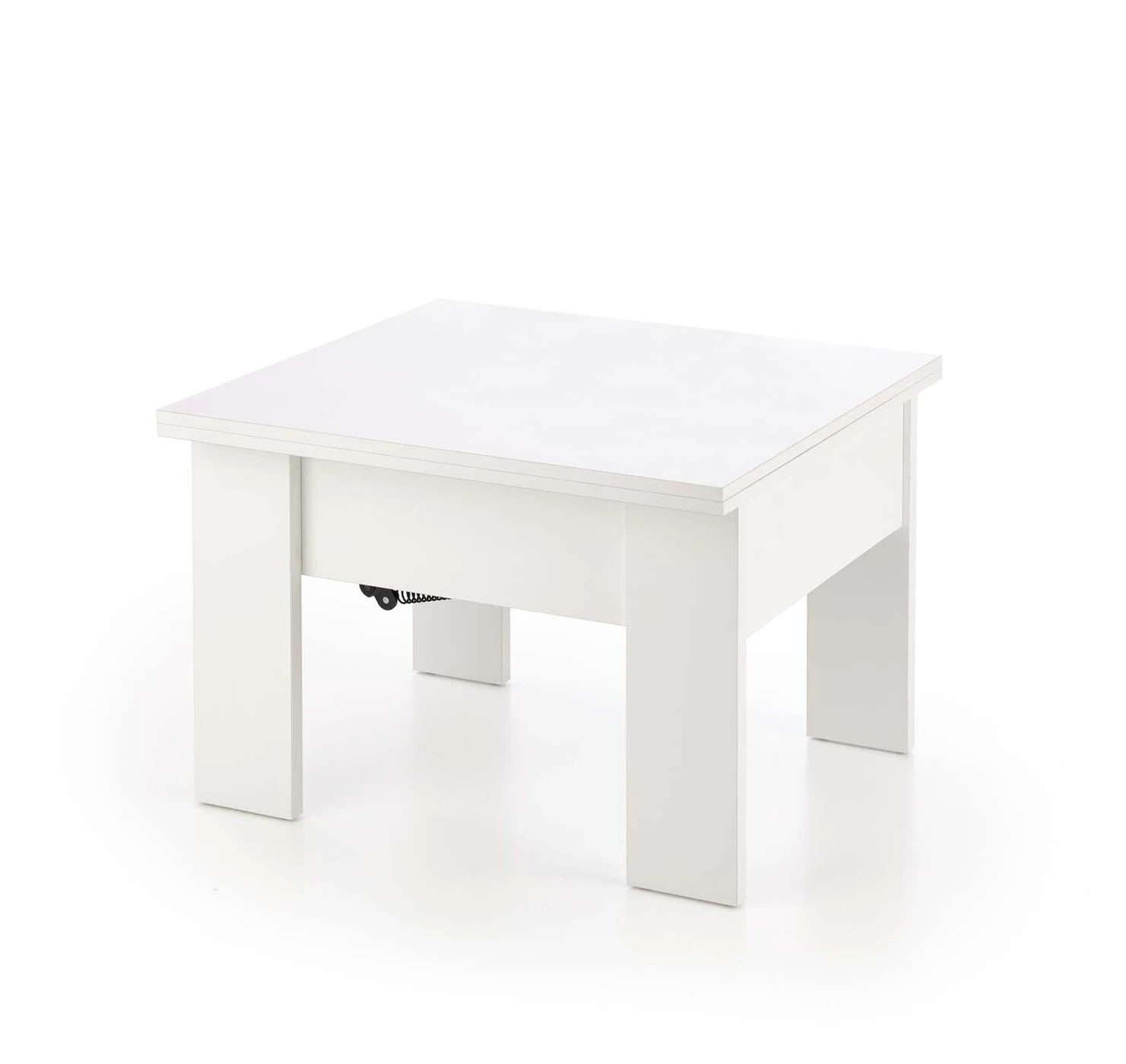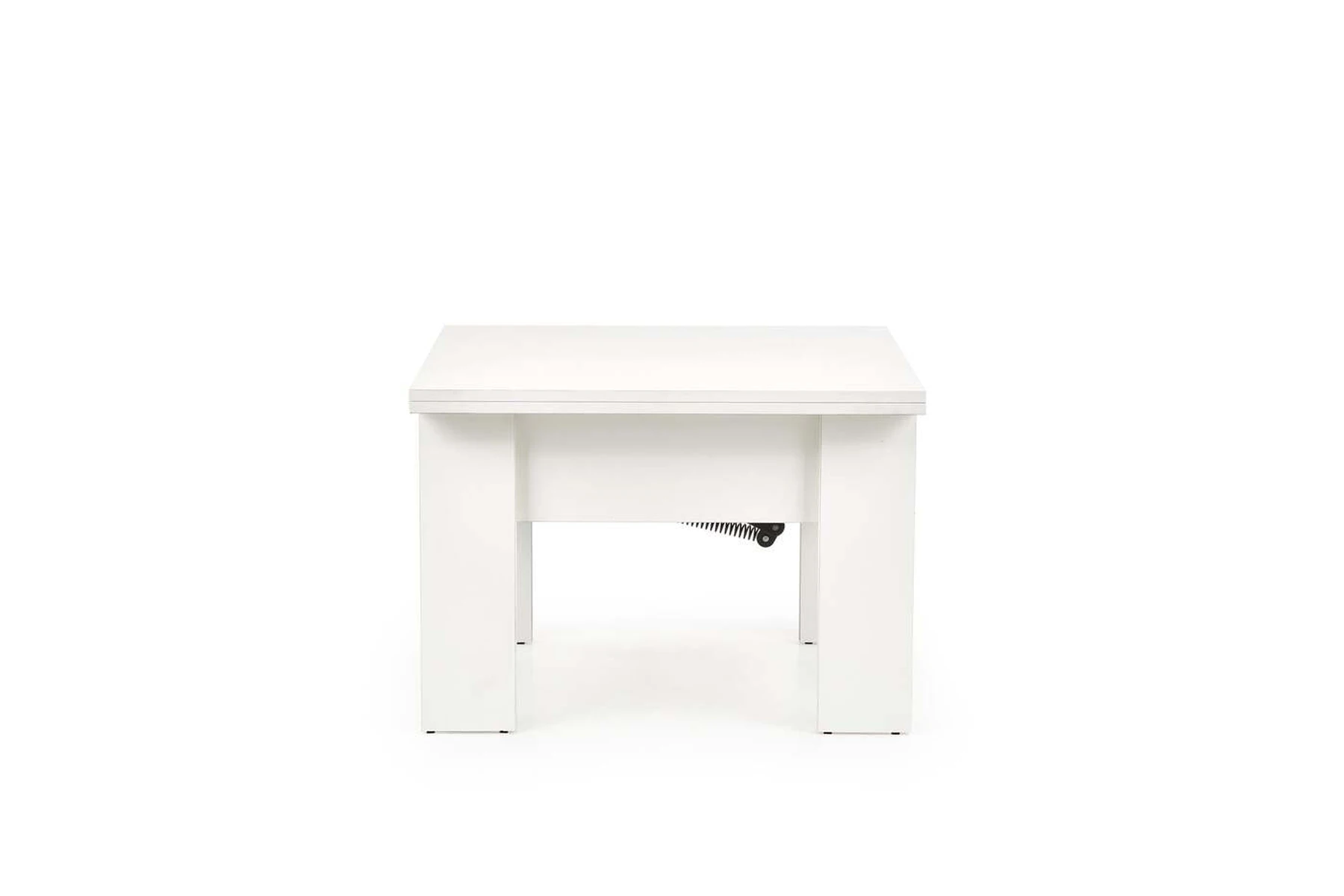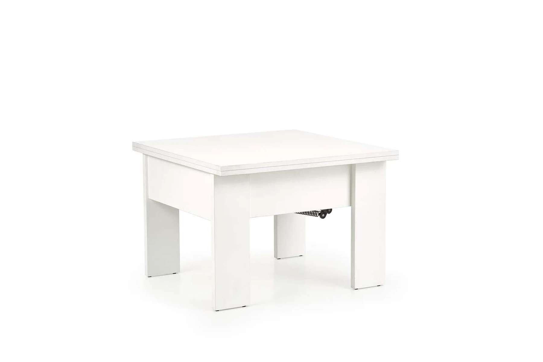 matmenys: 80-160/80/53-79 cm, pakeliamas kavos staliukas, medžiaga: laminuota medžio drožlių plokštė, spalva: balta