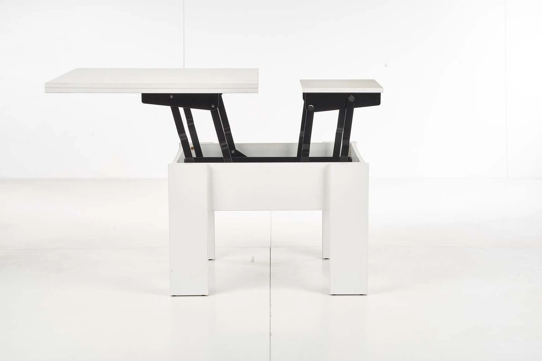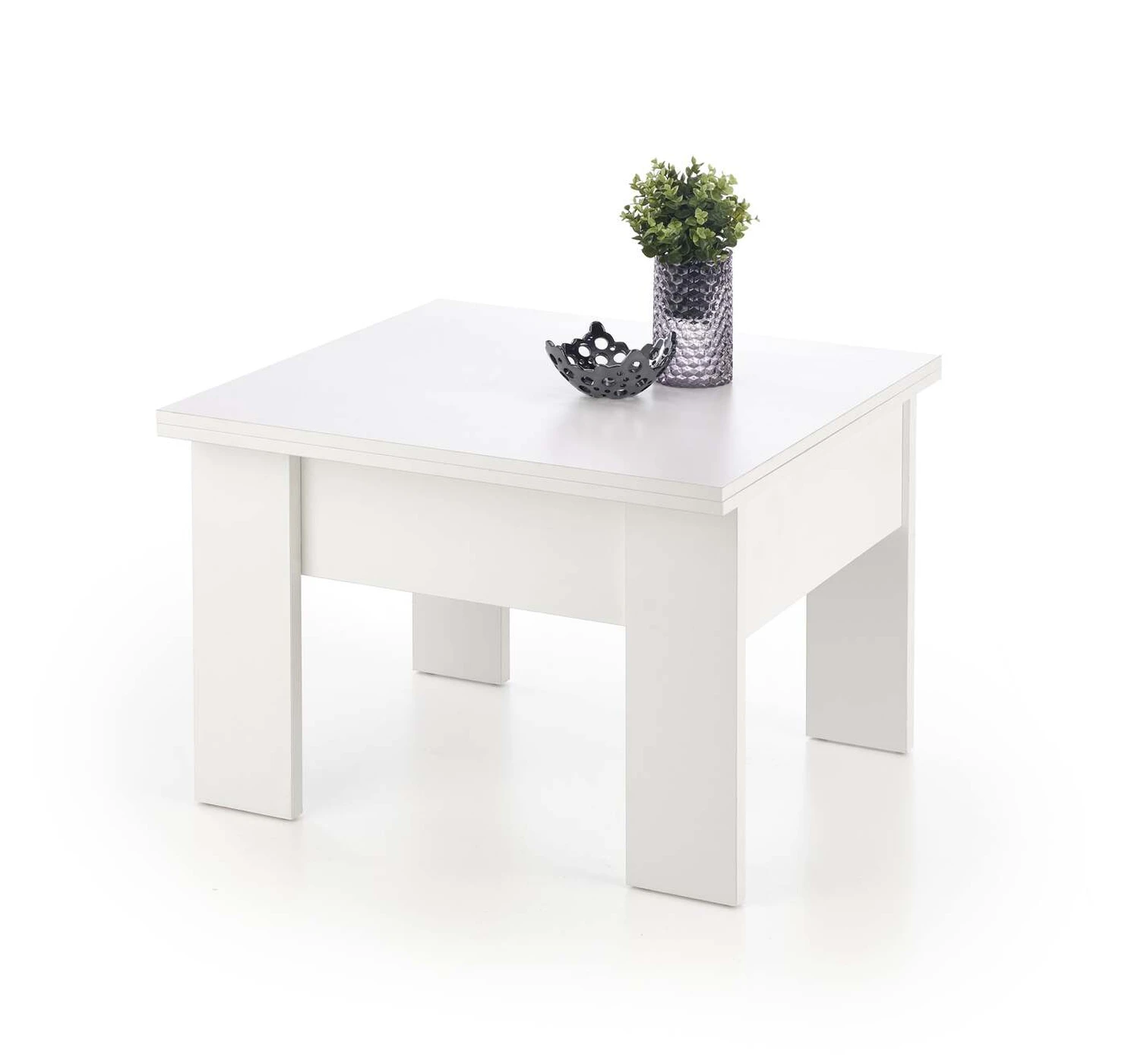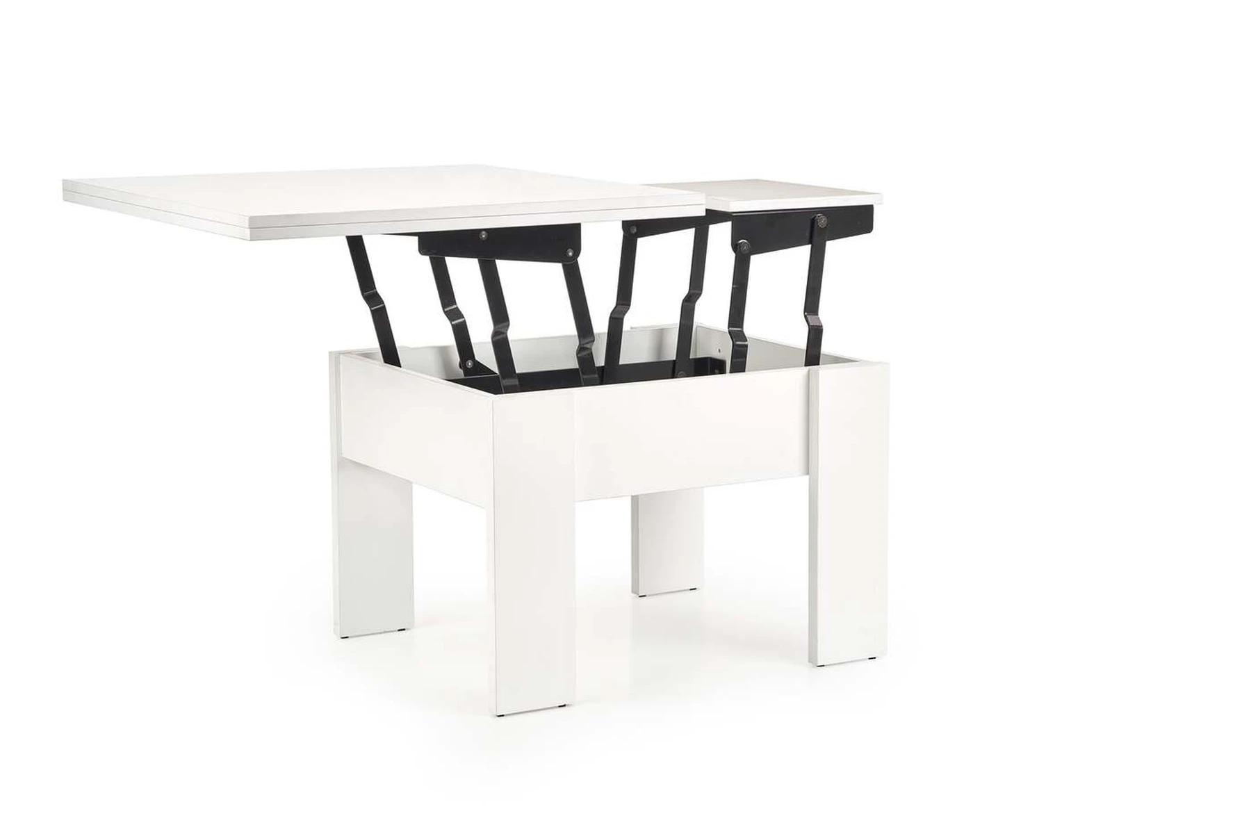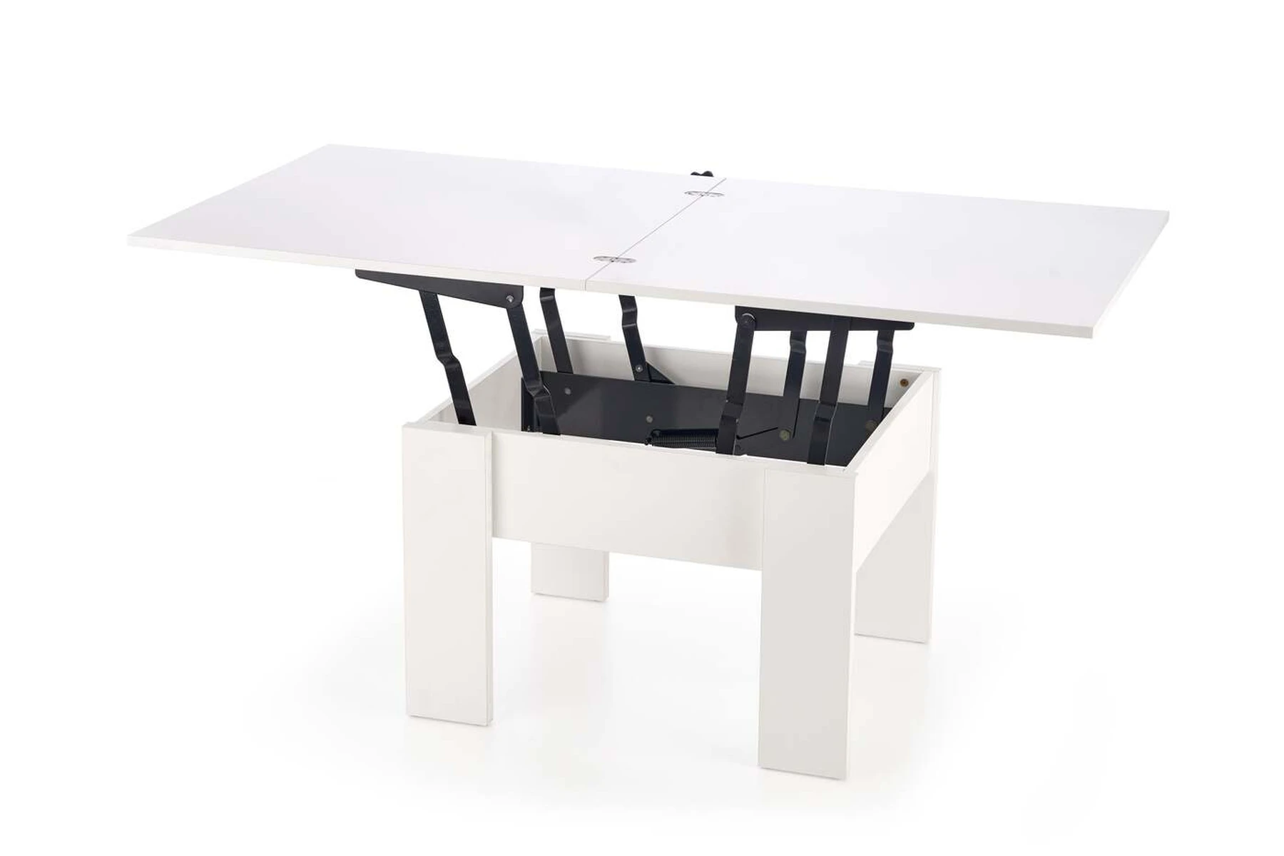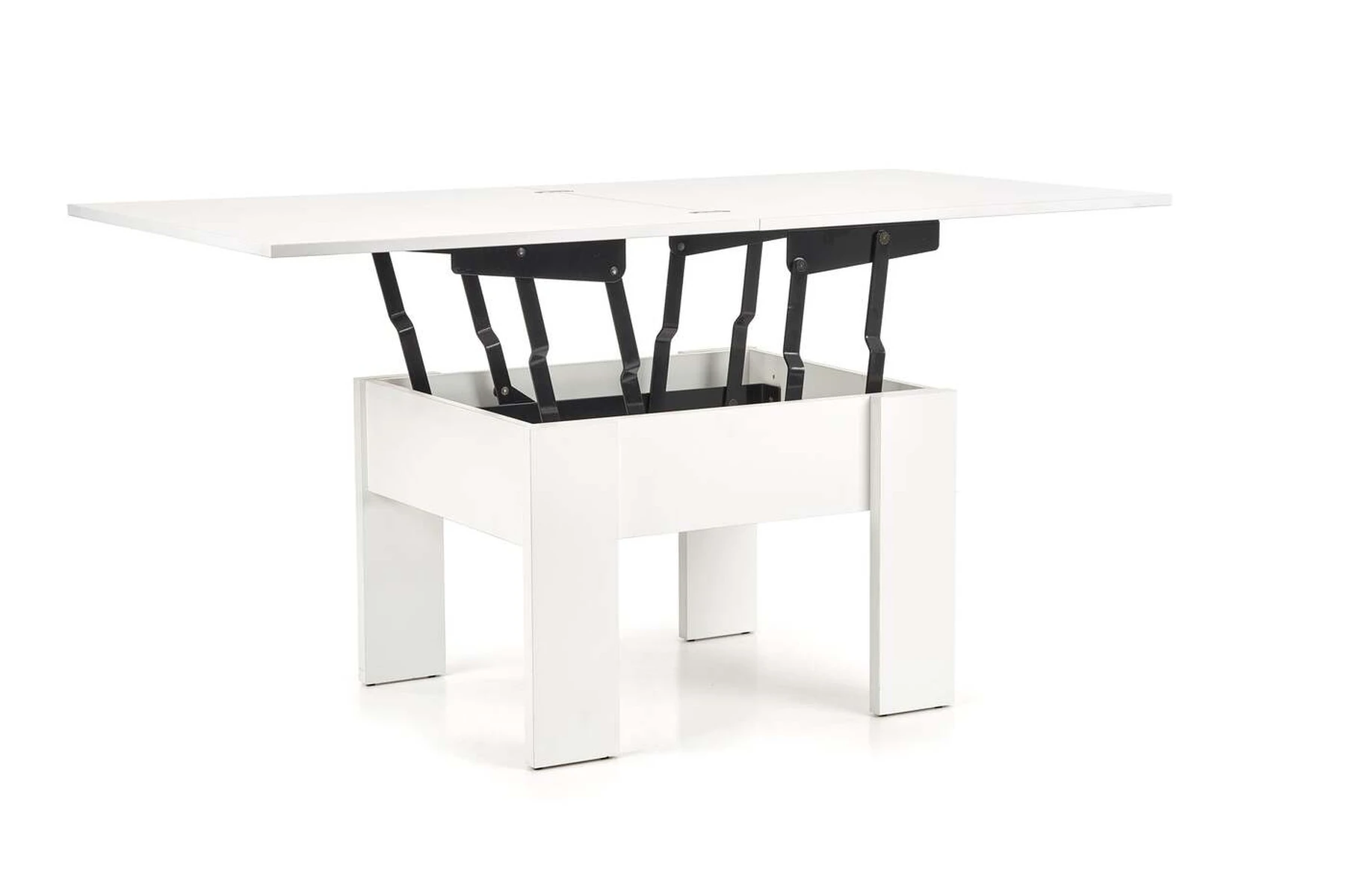 matmenys: 80-160/80/53-79 cm, pakeliamas kavos staliukas, medžiaga: laminuota medžio drožlių plokštė, spalva: balta