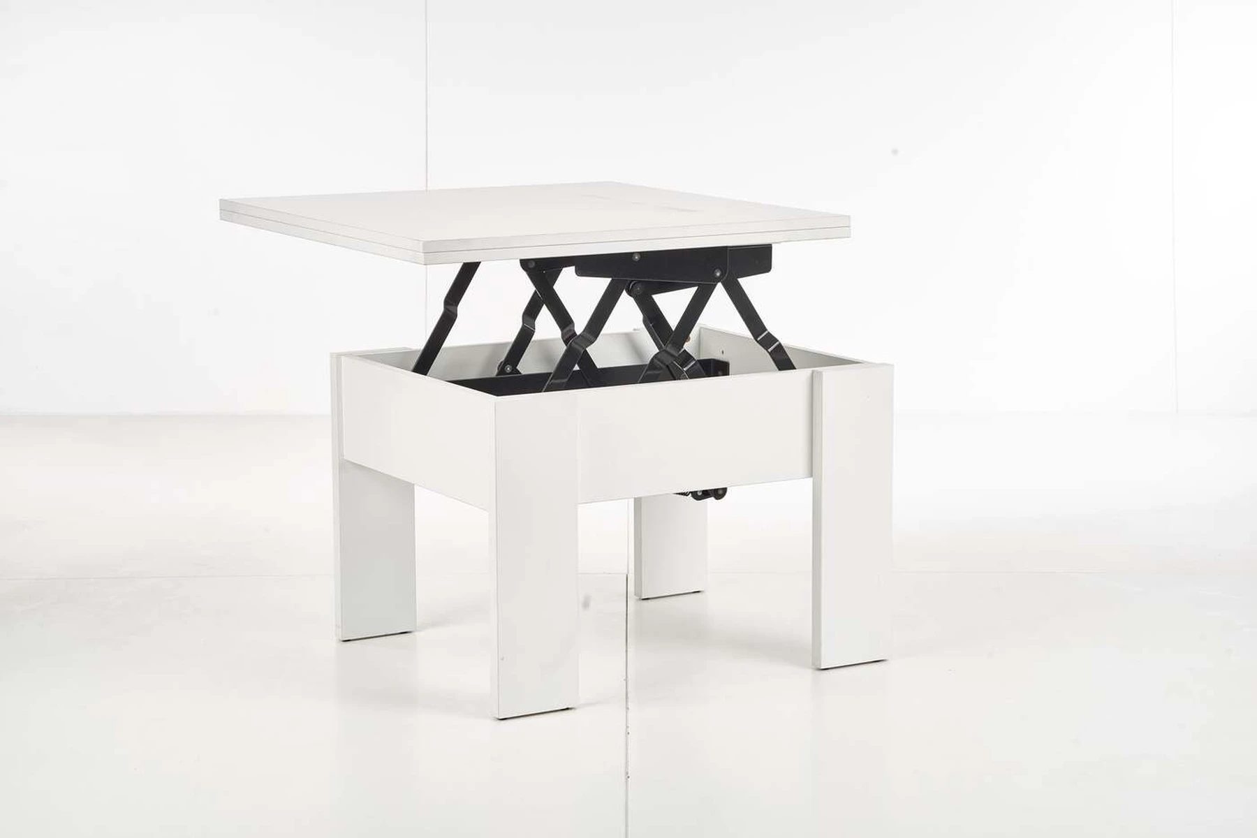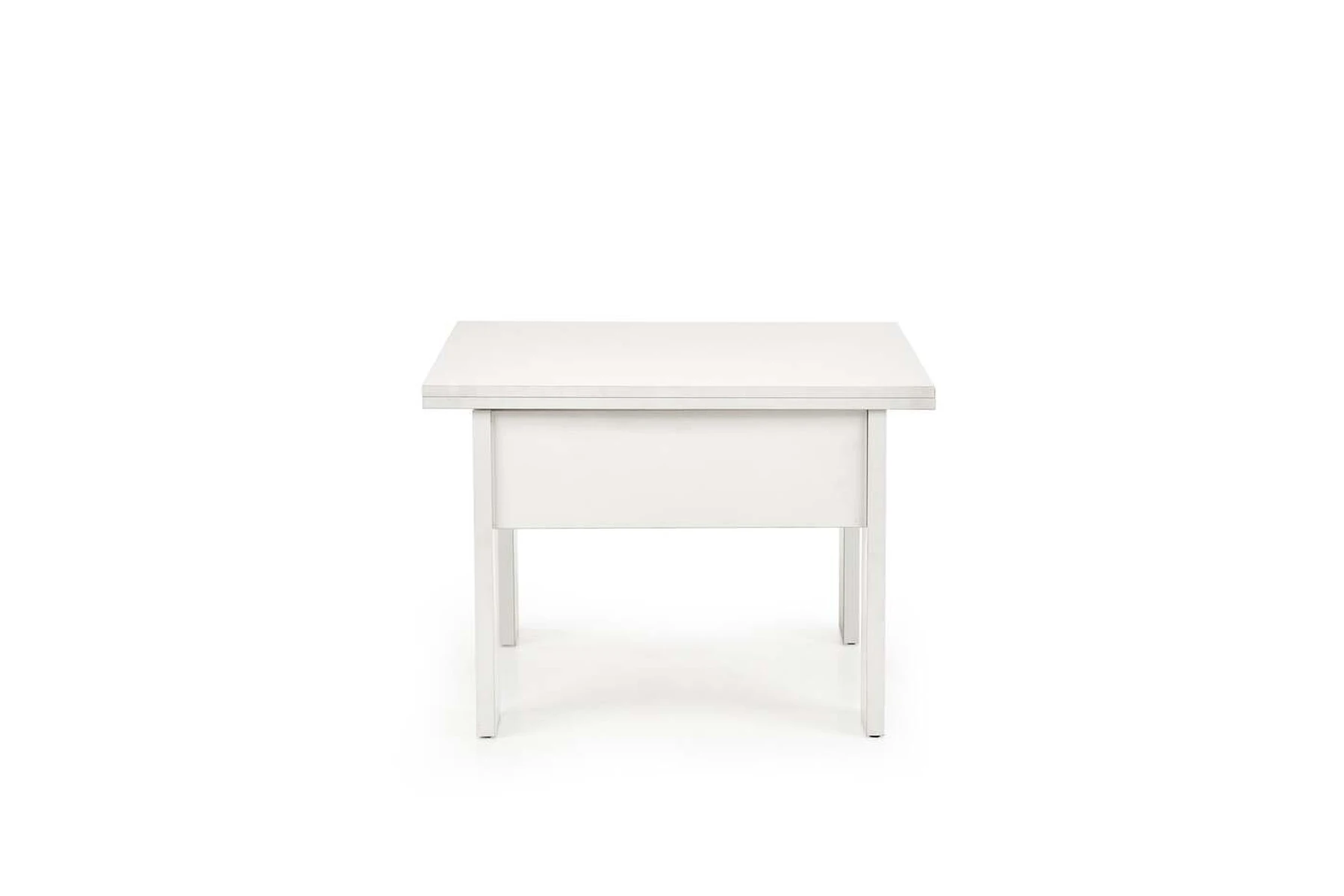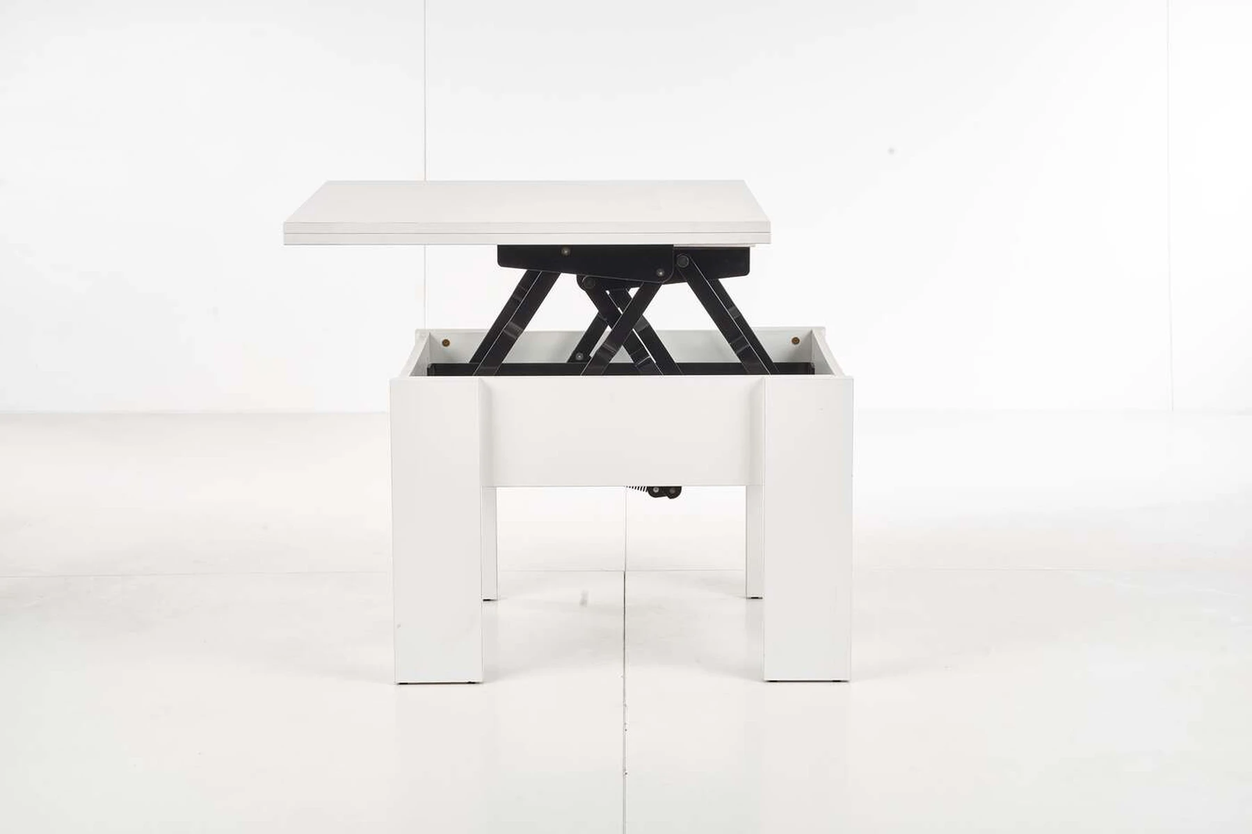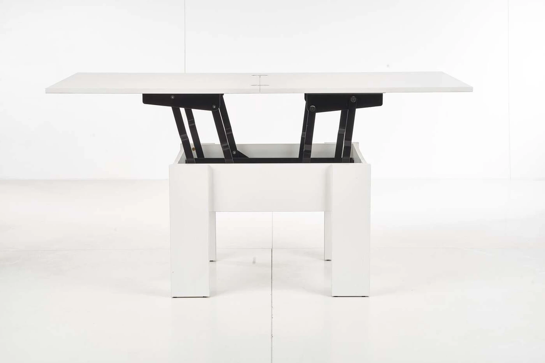 matmenys: 80-160/80/53-79 cm, pakeliamas kavos staliukas, medžiaga: laminuota medžio drožlių plokštė, spalva: balta
