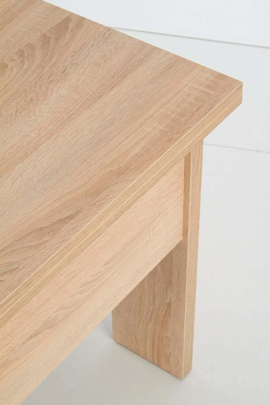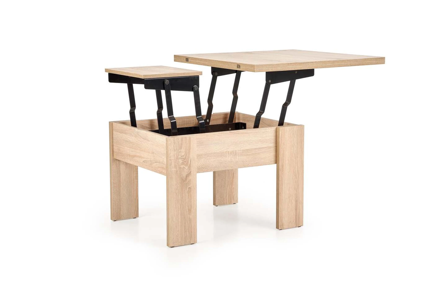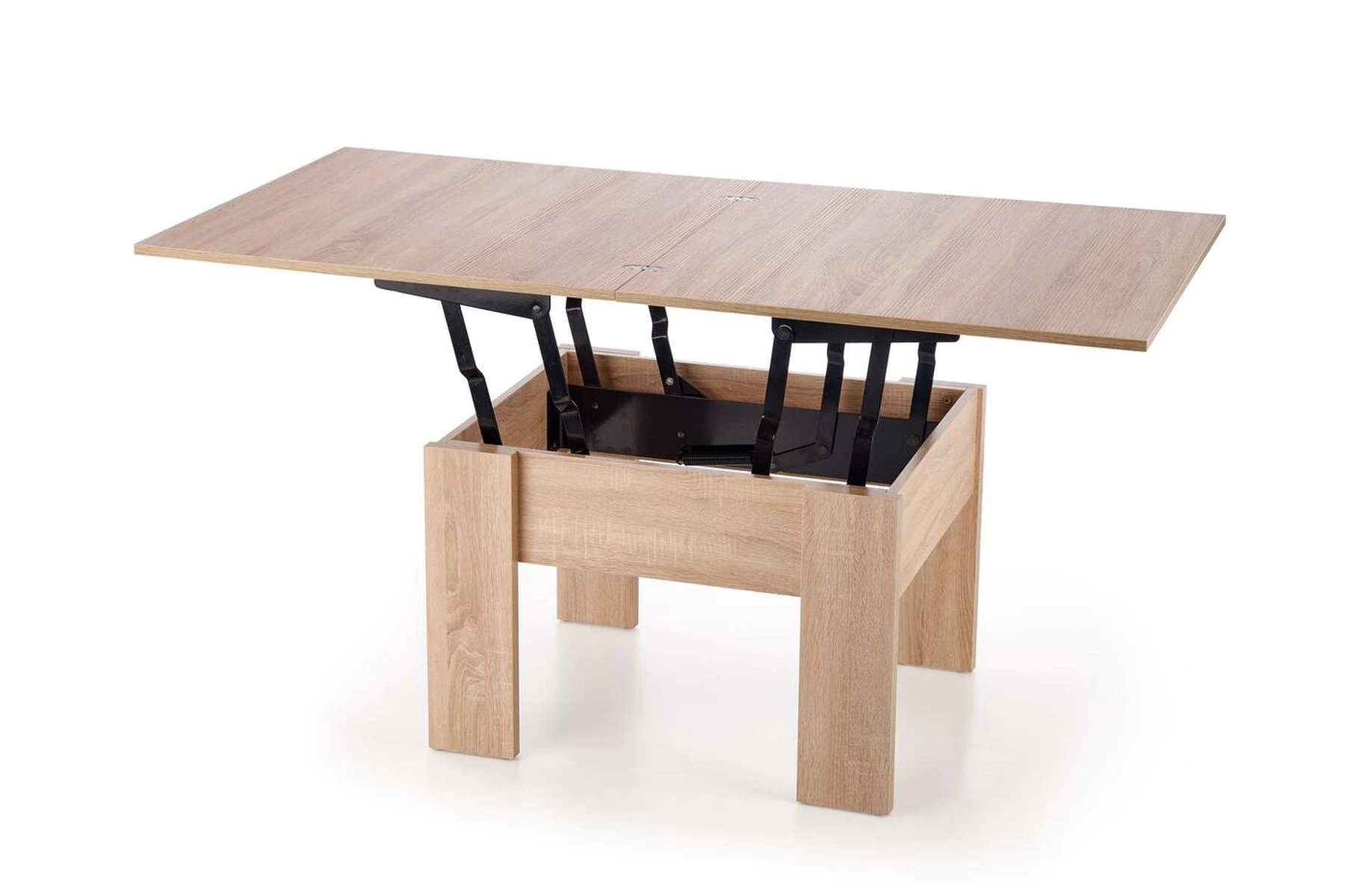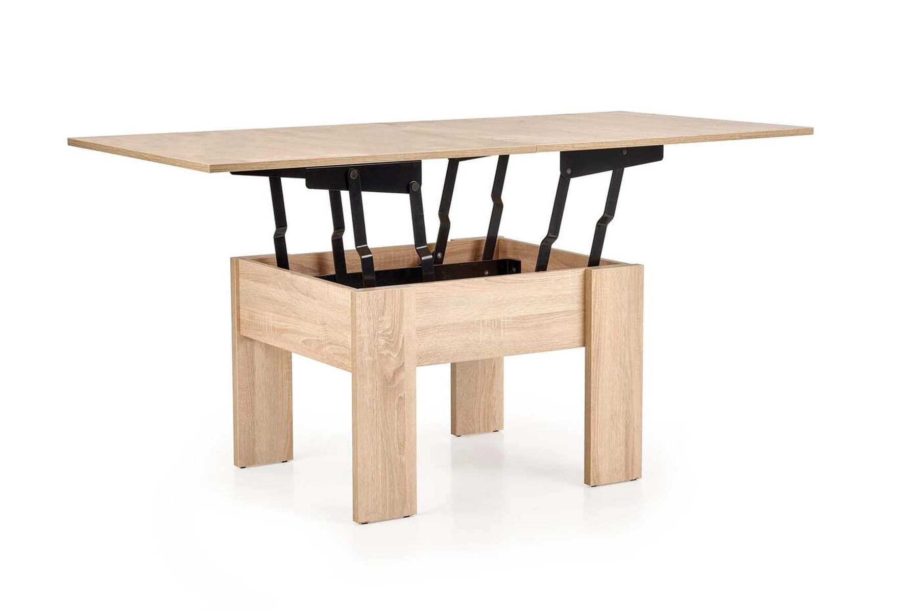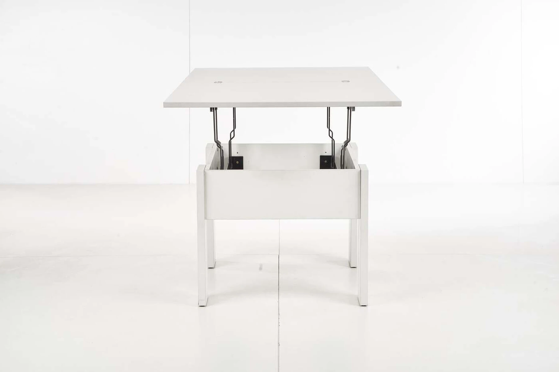 matmenys: 80-160/80/53-79 cm, pakeliamas kavos staliukas, medžiaga: laminuota medžio drožlių plokštė, spalva: balta