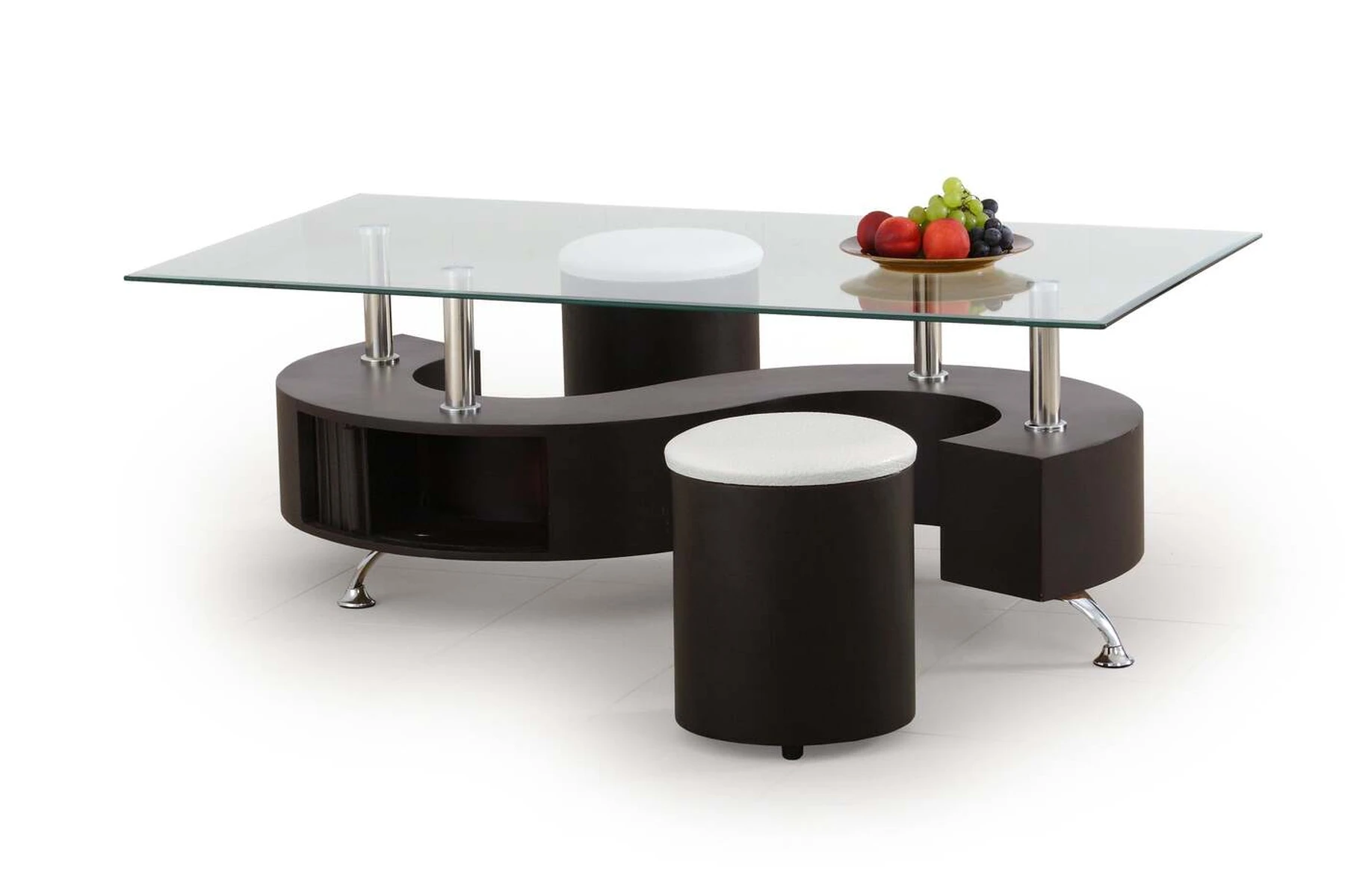 kavos staliukas su pufais, matmenys: 130/70/45 cm, medžiaga: stiklas / laminuotas MDF, spalva: venge