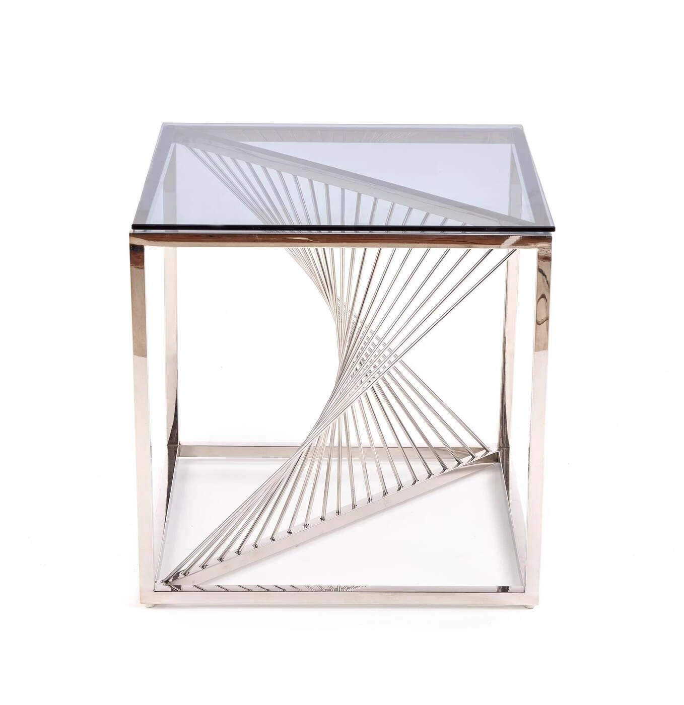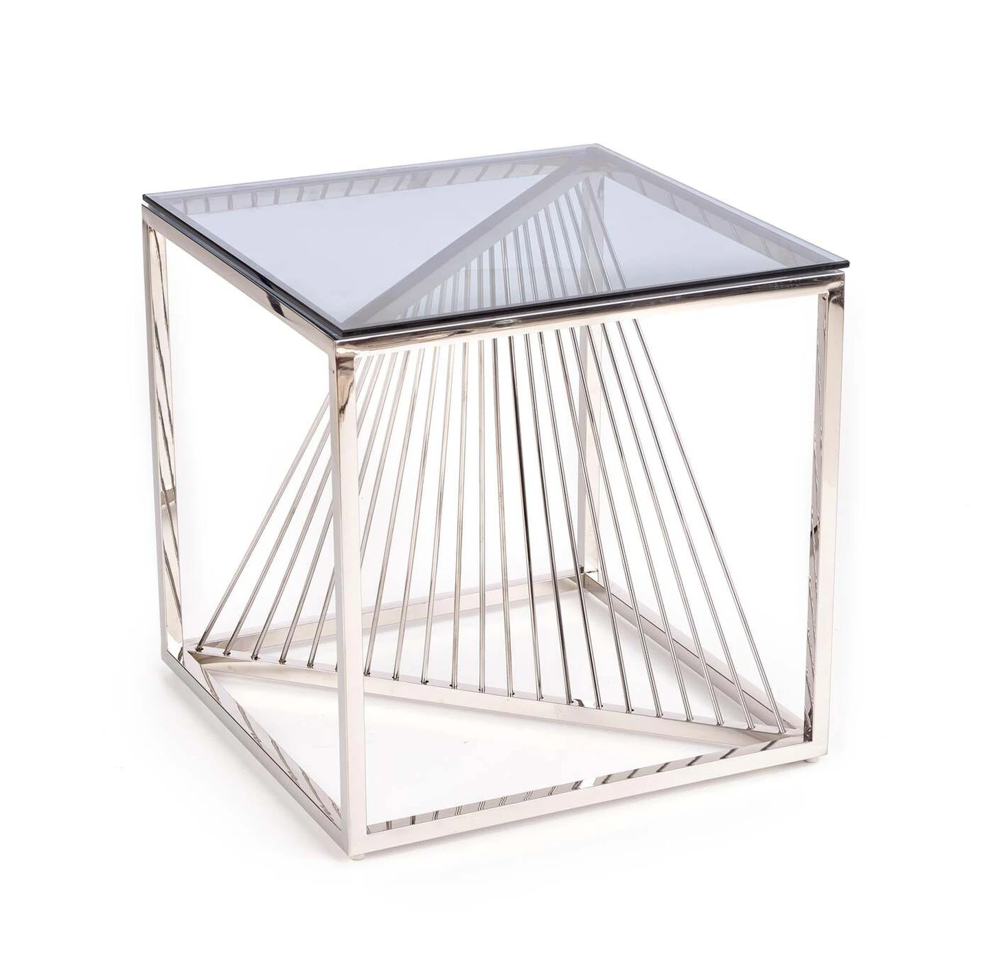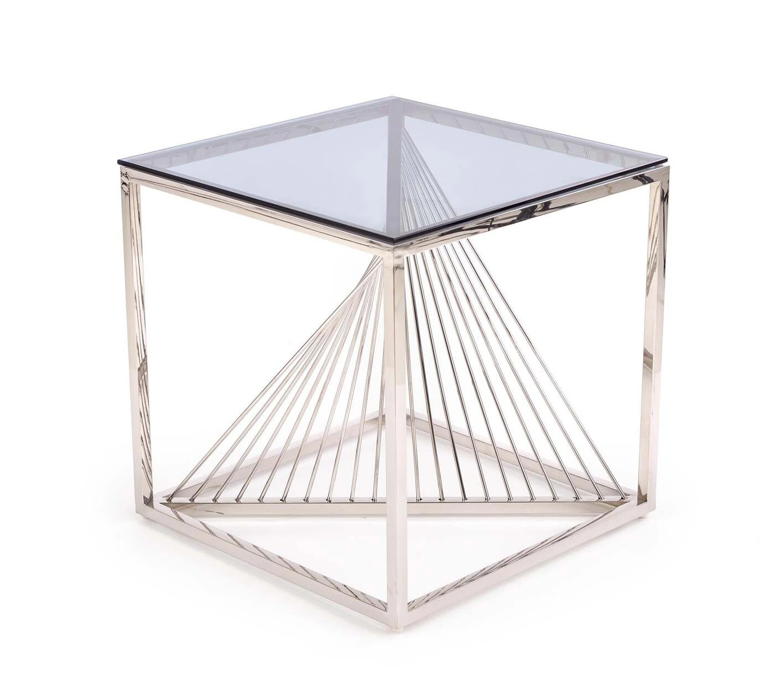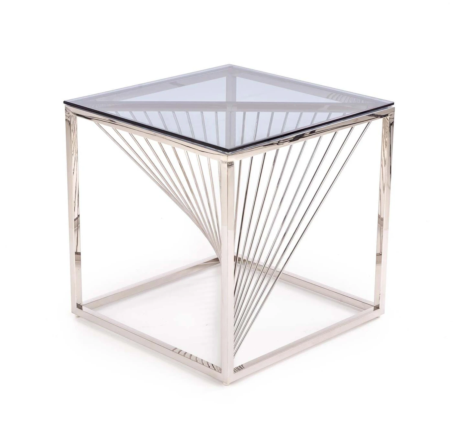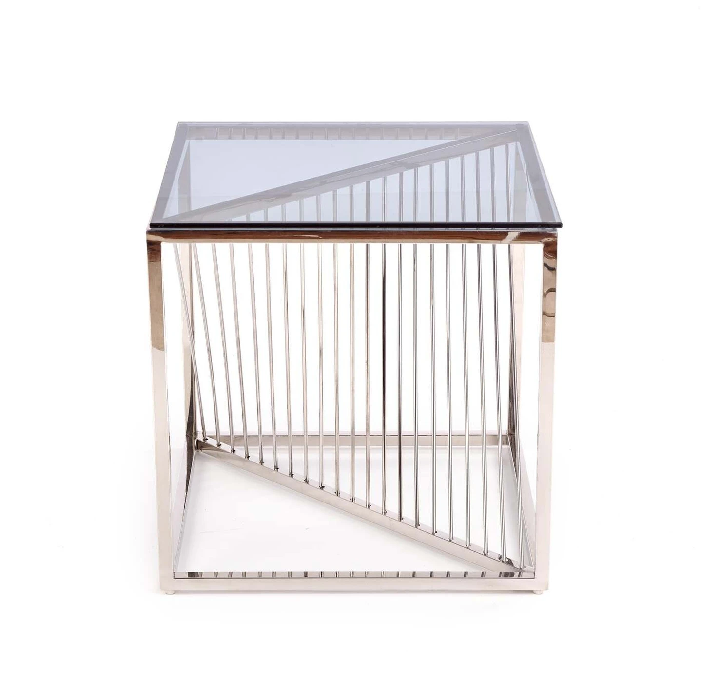 matmenys: 55/55/55 cm, medžiaga: stiklas / nerūdijantis plienas, spalva: rūkyta