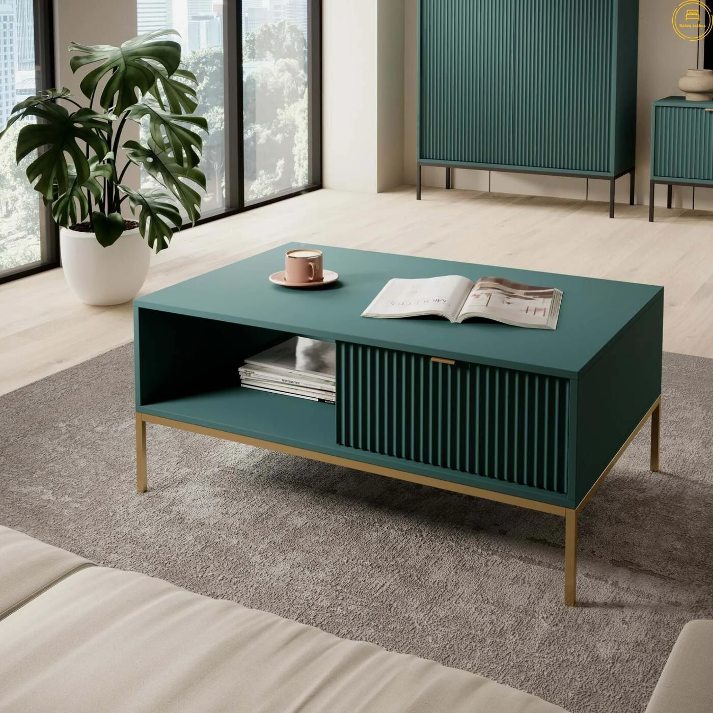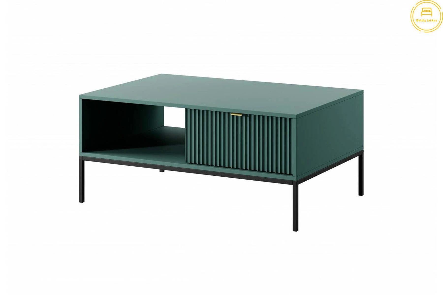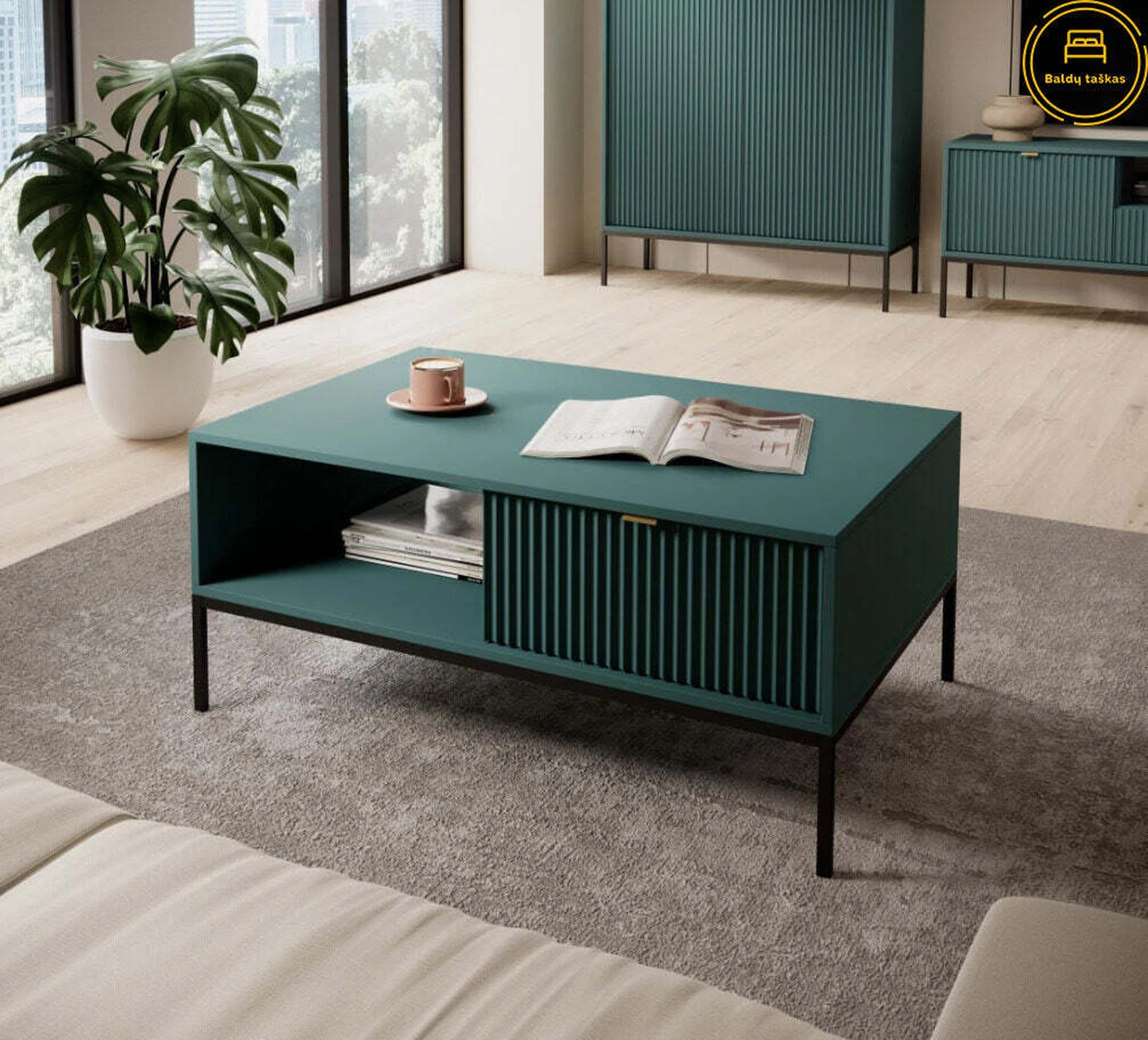 Modernus minimalistinio dizaino baldas papuoš Jūsų svetainę, o daiktus patogiai sudėsite į tam skirtus skyrius.Staliuko išmatavimai: plotis: 104 cm; 48 aukštis: cm; 68 gylis cm.Medžiaga: LMDP plokštė, ABS plastiku dengtos briaunos.
